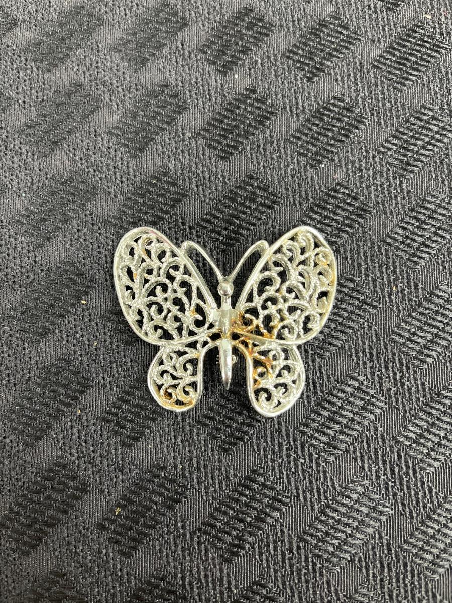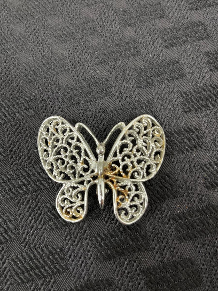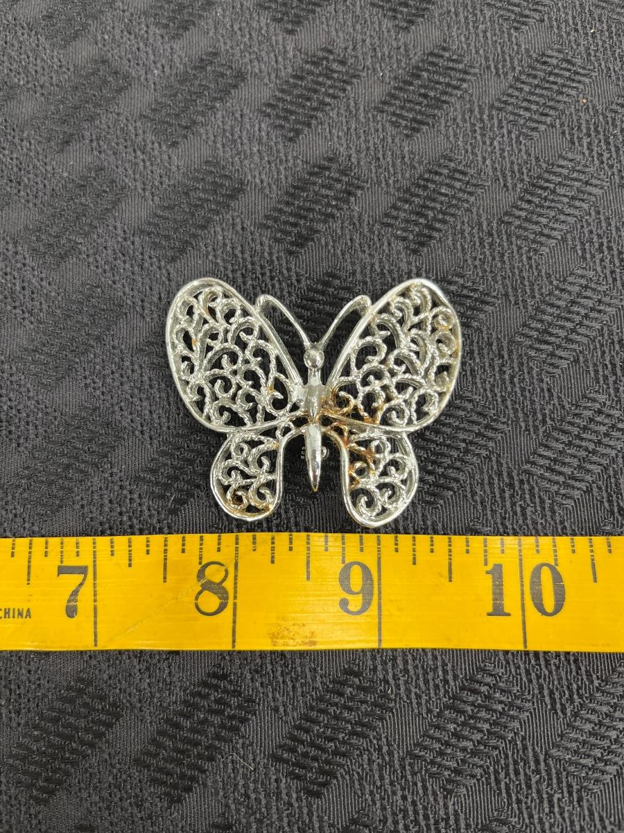 Gerrys Butterfly Brooch Pin Open Work Rope Figural Silver Tone Designer Signed. As is see photos