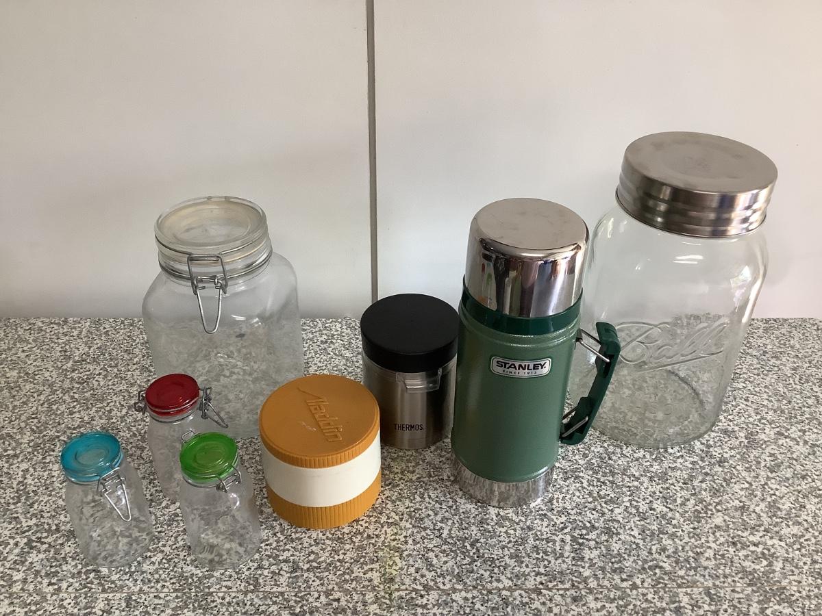 Get It To Go lot- Large Ball Jar, make and take Limoncello or drinks with Stanley, Aladdin thermos