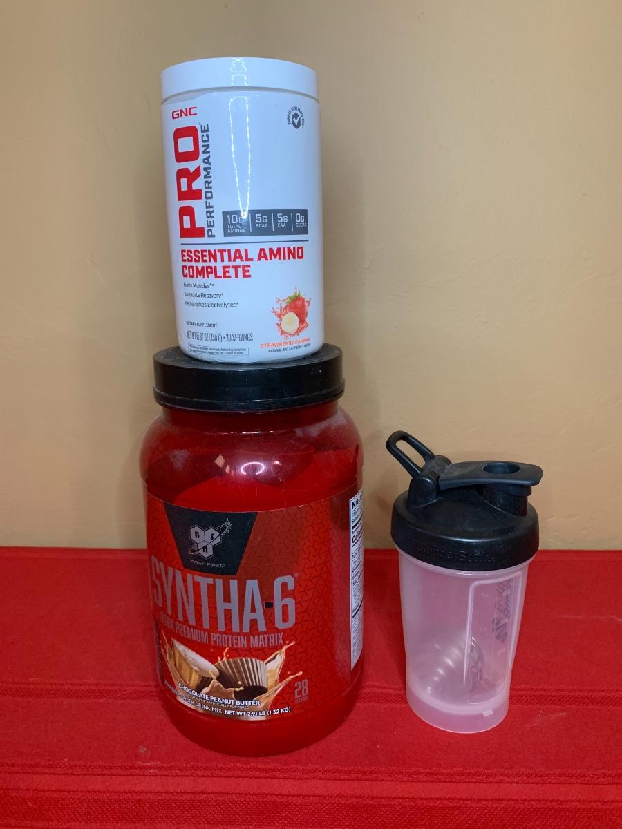 This lot is perfect for any gym goer, includes one protein mixing bottle, one container of protein and one of amino acids. Both containers are open but not expired.
