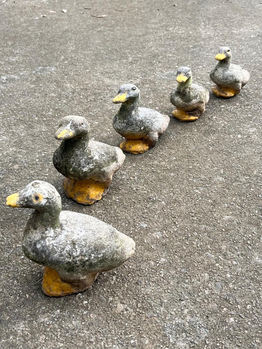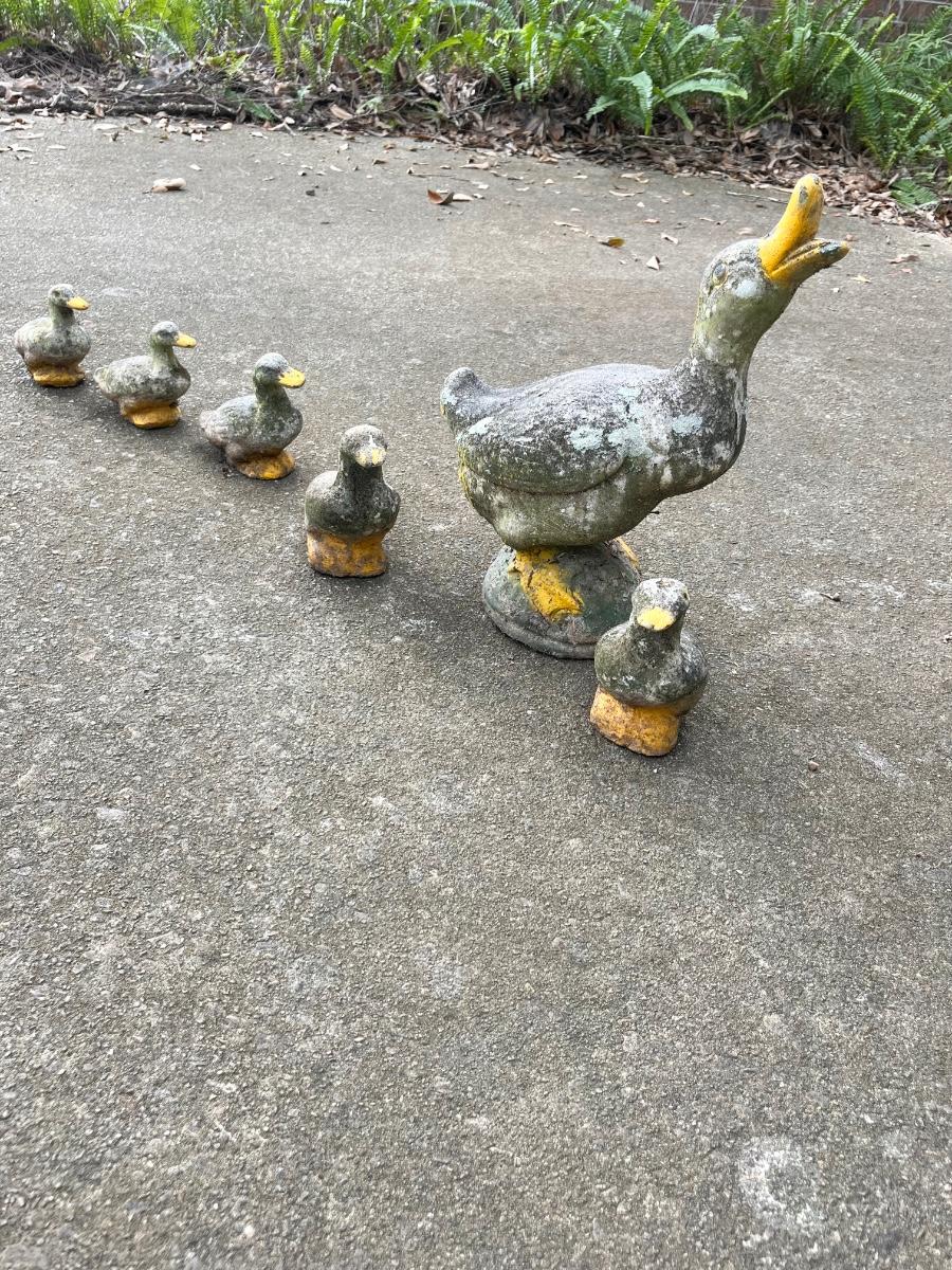 “Get Your Ducks In A Row” ~ Momma & Five (5) Baby Cement Garden Ducks