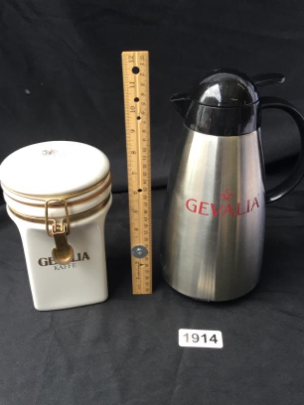 Gevalia Coffee carafe and Gevalia coffee canister Lot 1914