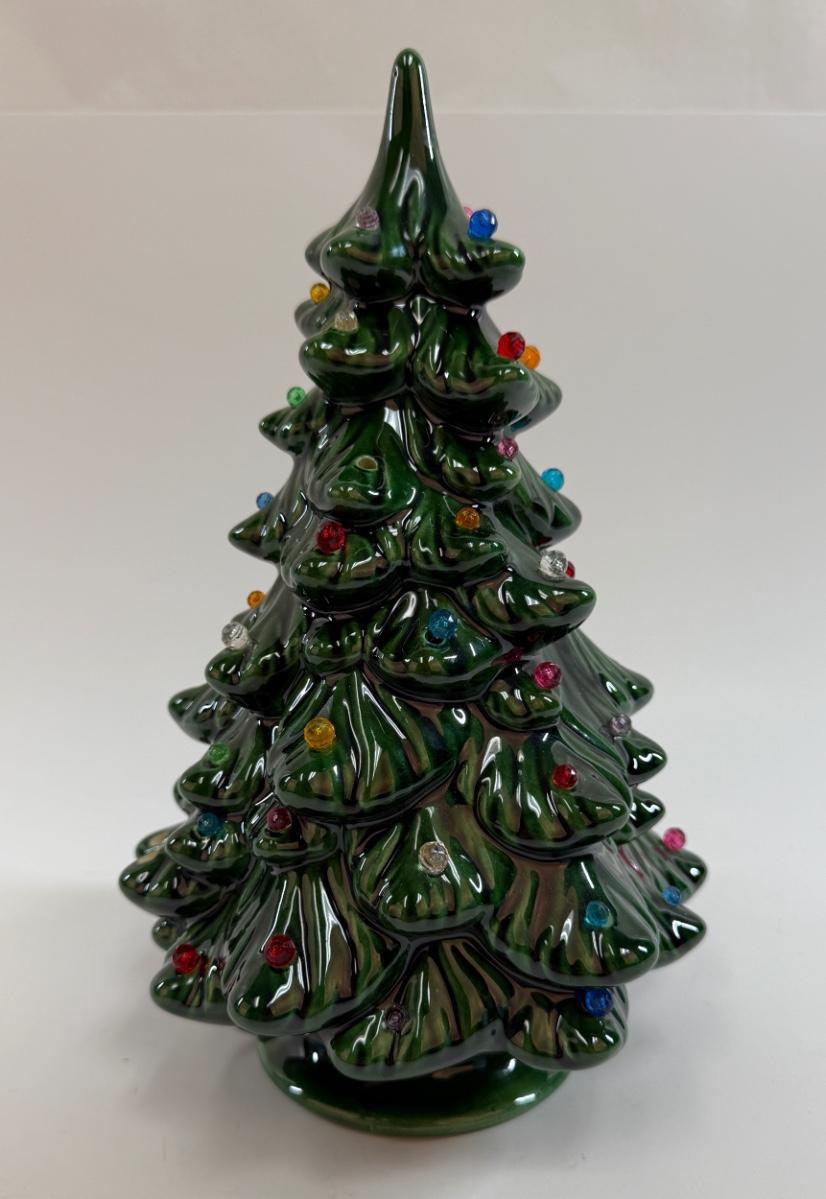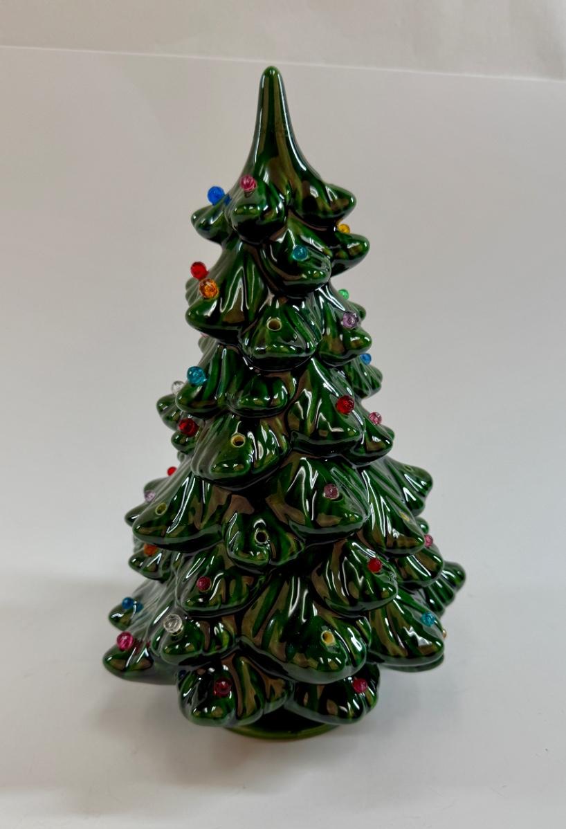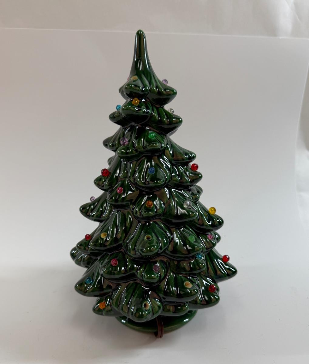 Hand Painted Ceramic Pottery Christmas Tree with some Lights missing