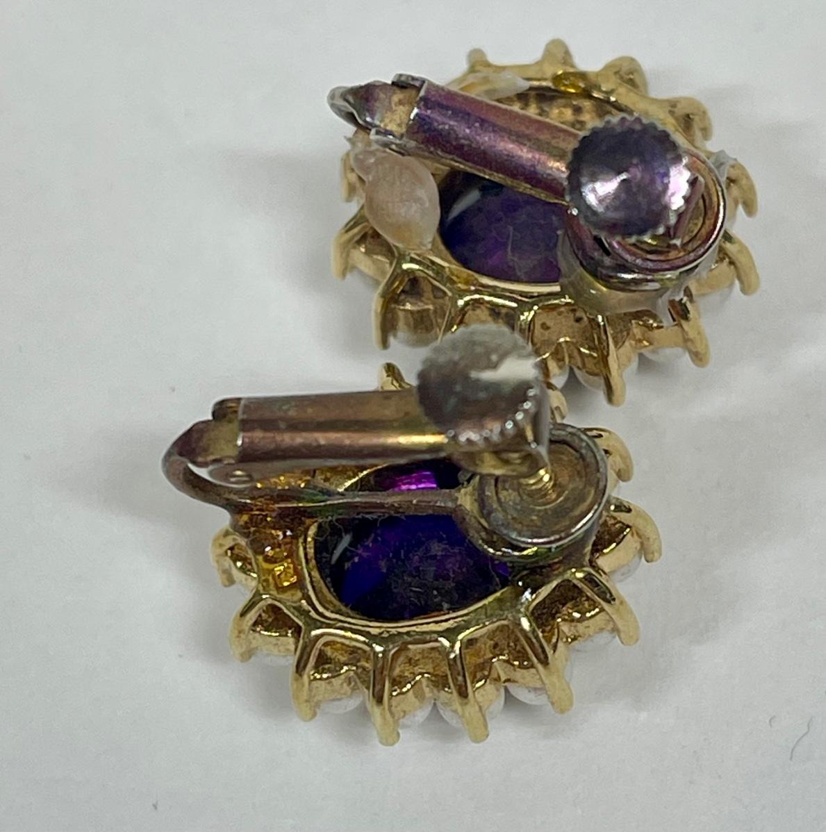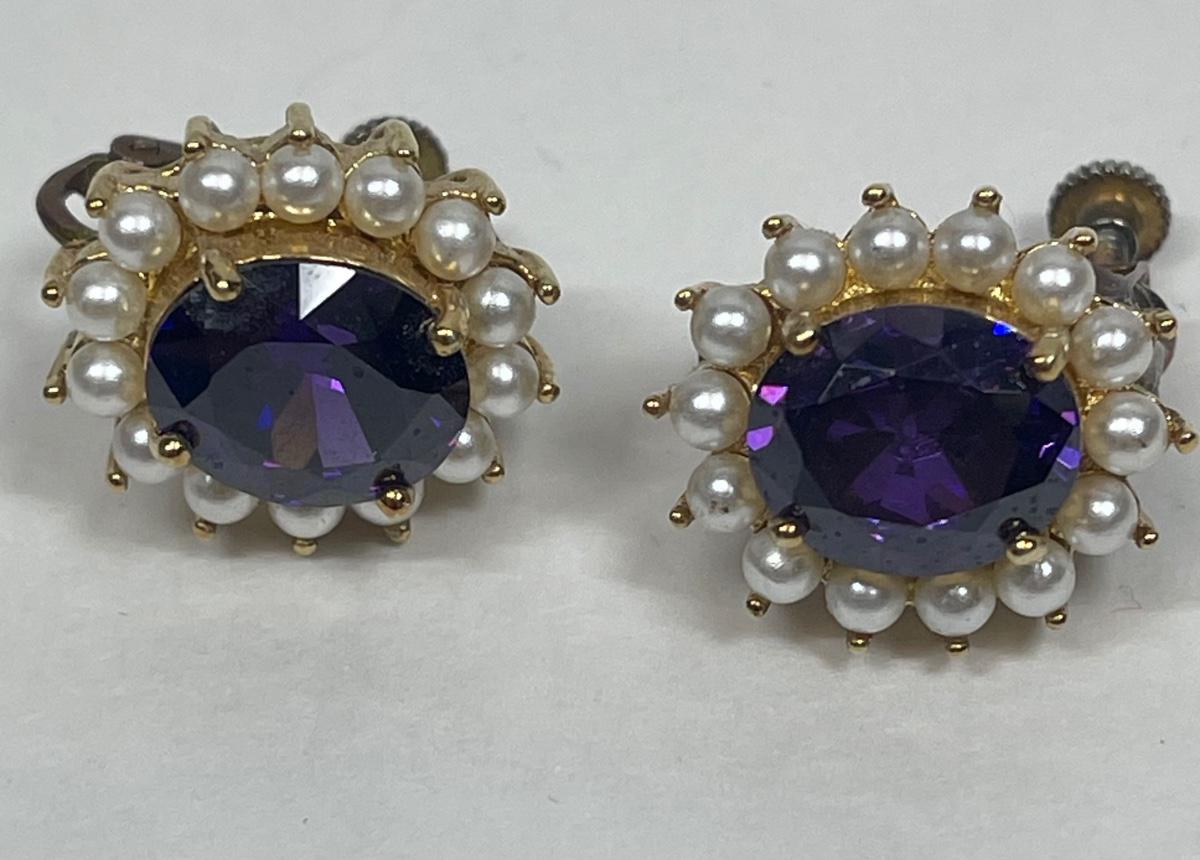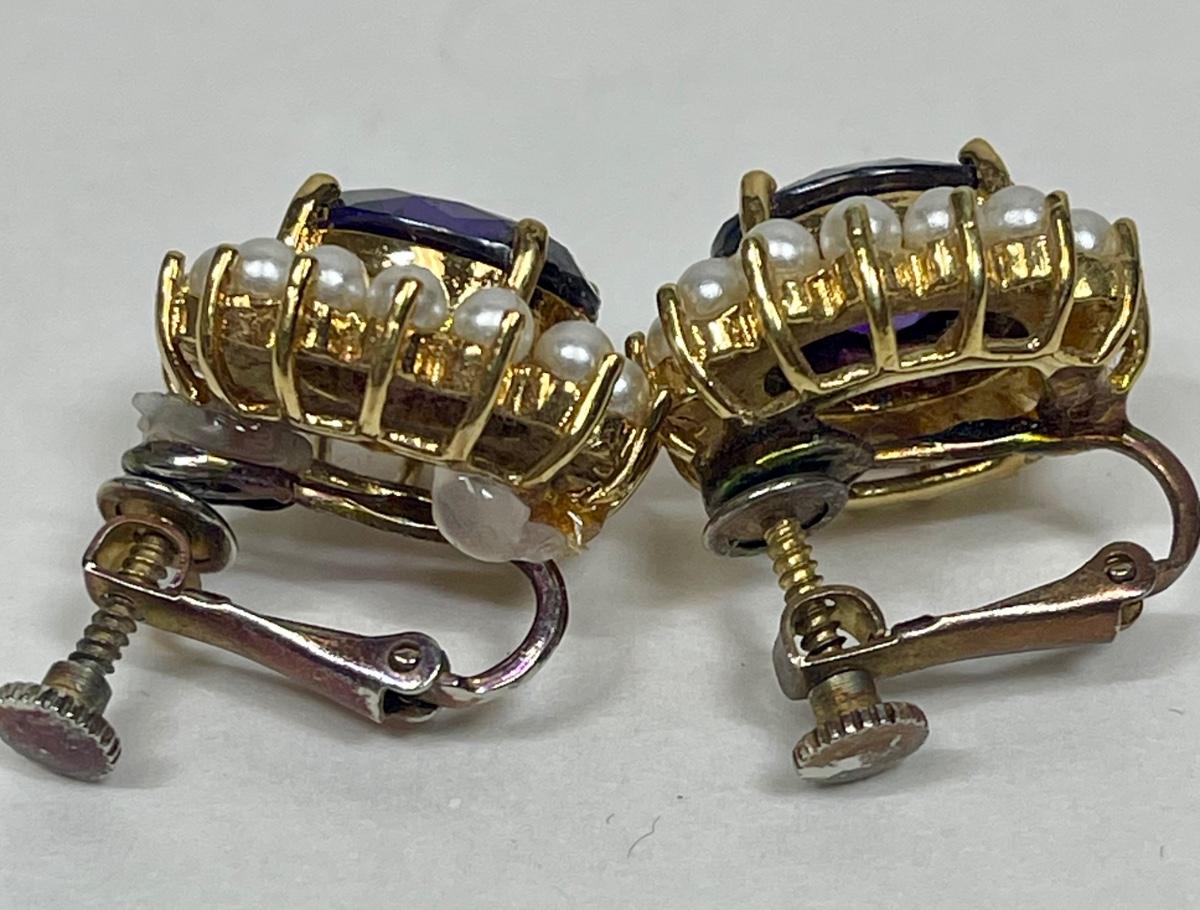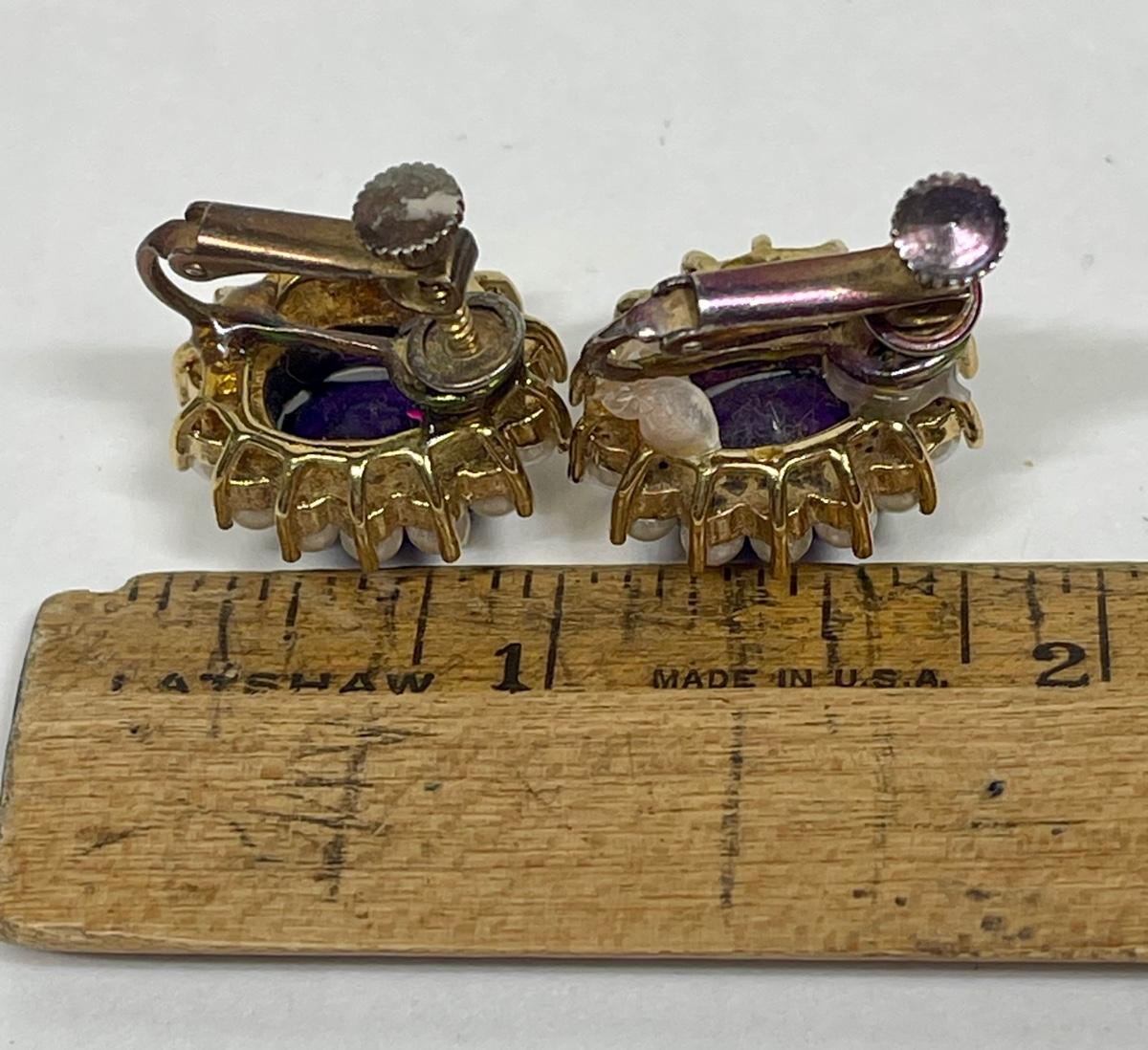 Earrings purple oval stones surrounded by faux pearls fashion jewelry clip-on