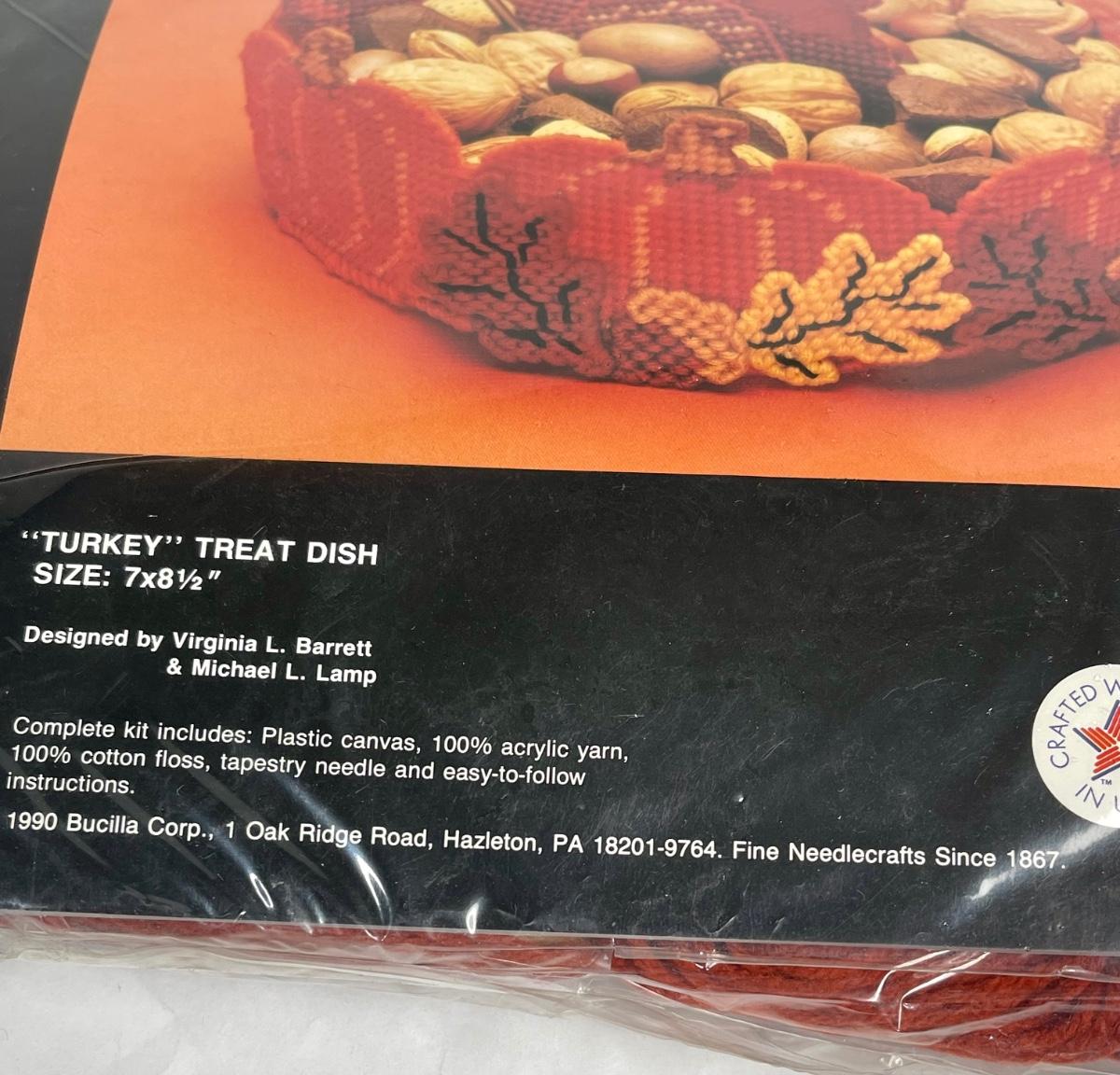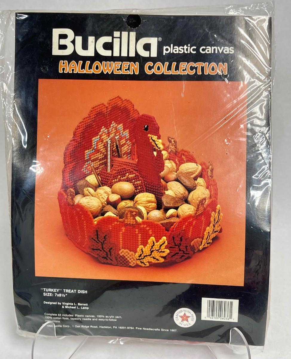 VBintage Bucilla Turkey Treat Dish Halloween Collection plastic canvas kit Thanksgiving Decor 1990