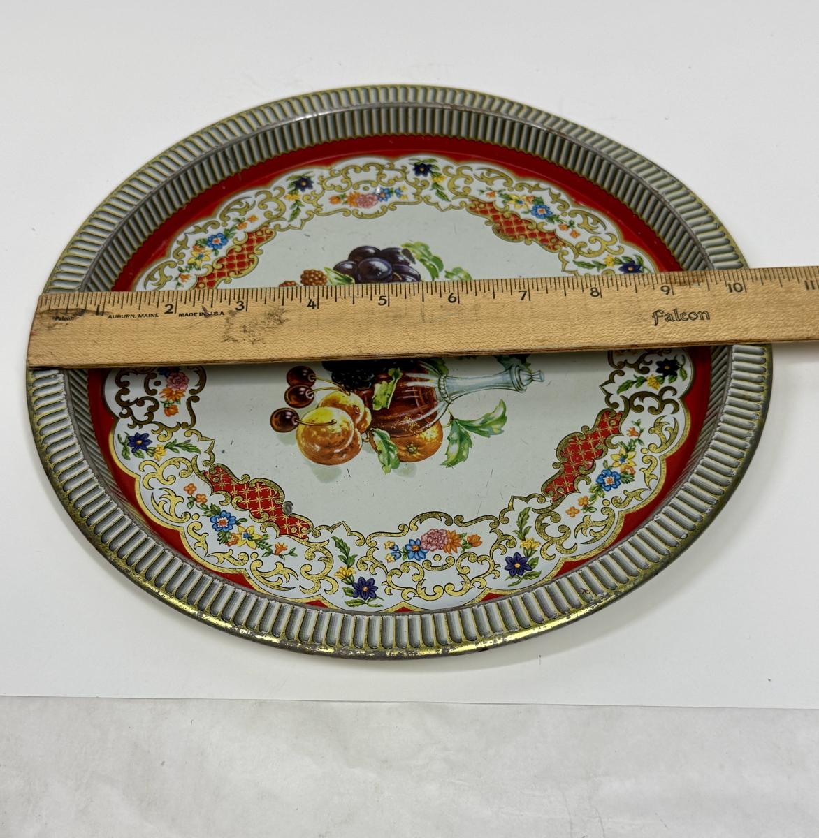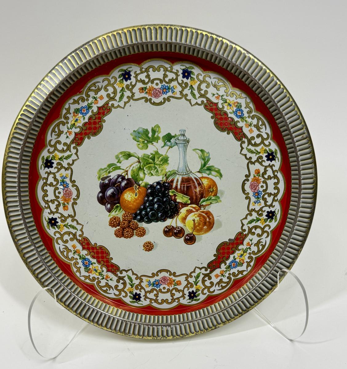 Vintage Daher Tin Tray Fruit Floral Red Gold Designed in Long Island NY Made in England