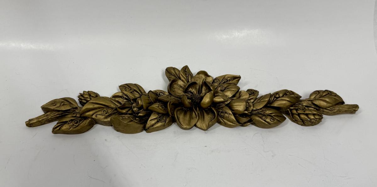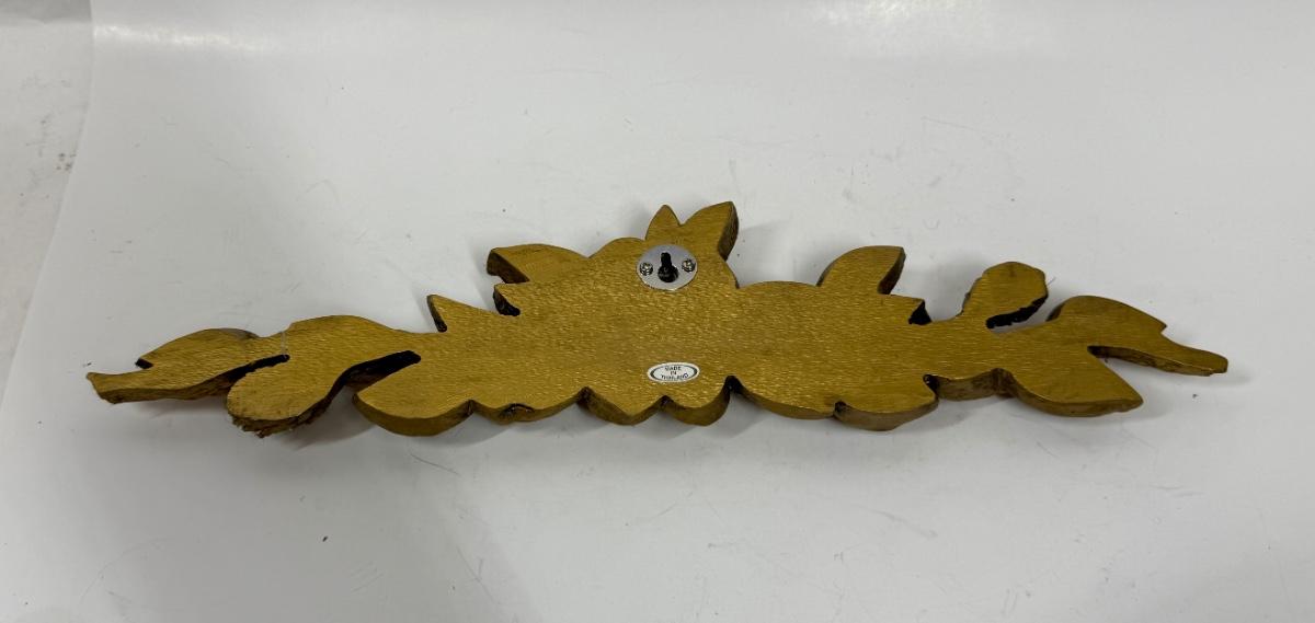 Intricate relief design, made in Thailand. Approx. 14" long. Good condition. Painted in gold.