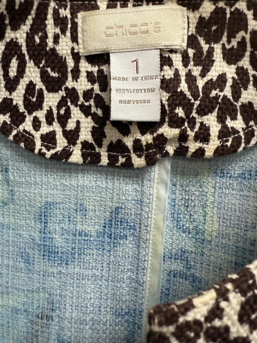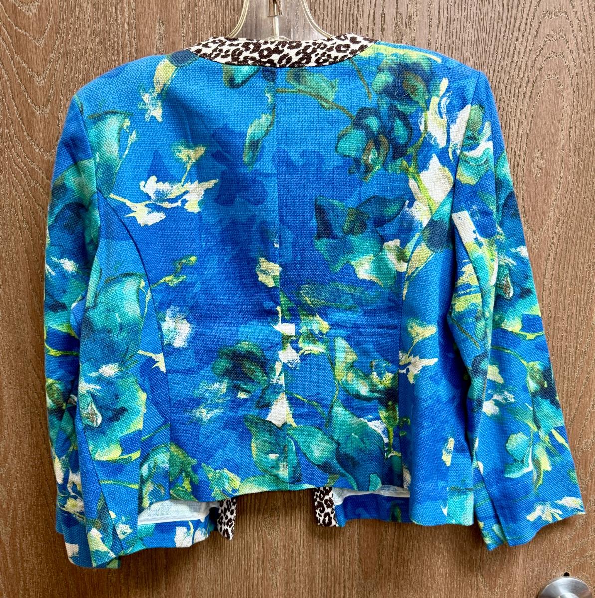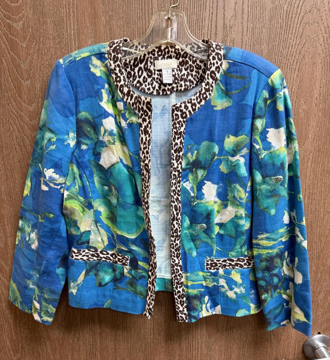 Chico's Size 1 Floral Blue Green Open Jacket 100% cotton