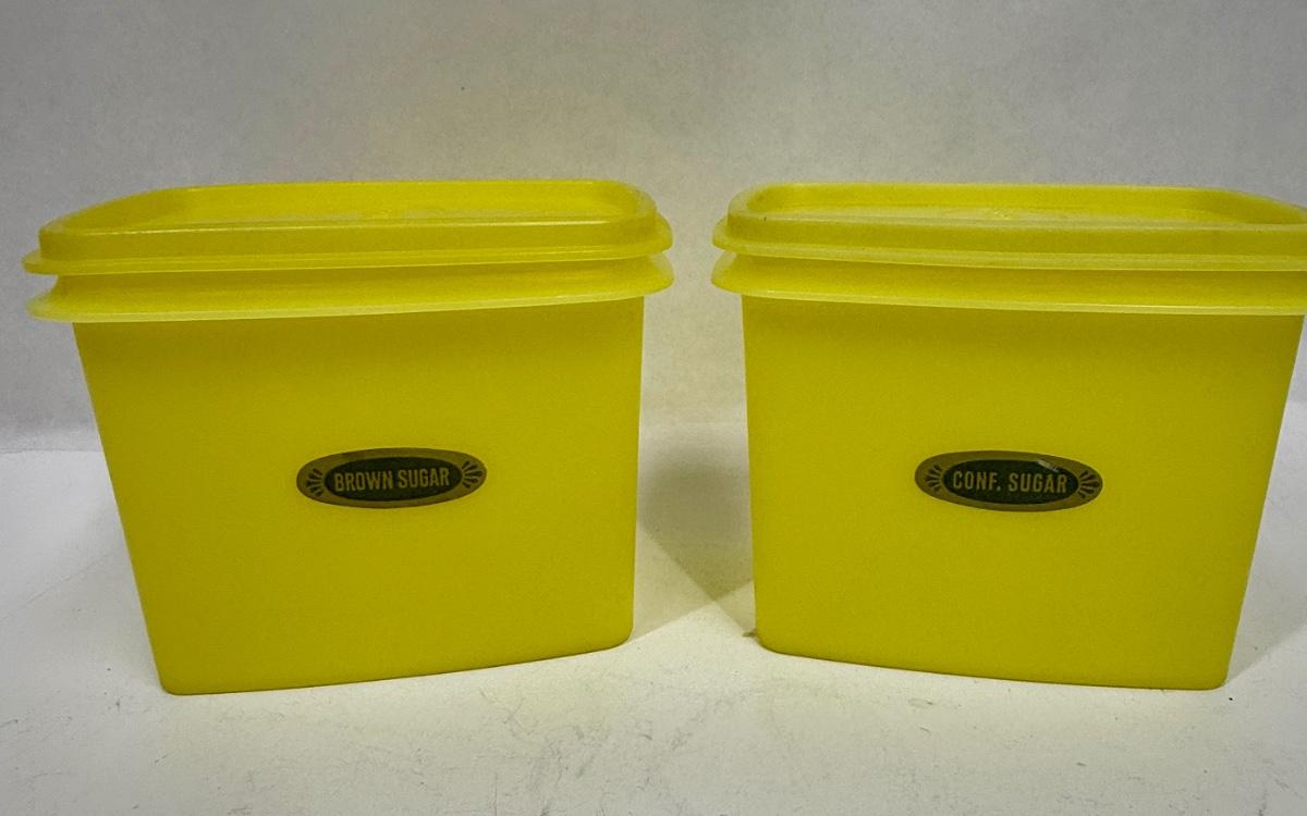 Vintage Tupperware Shelf Saver Yellow 2 containers with lids