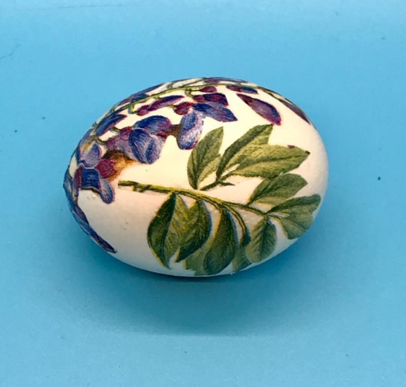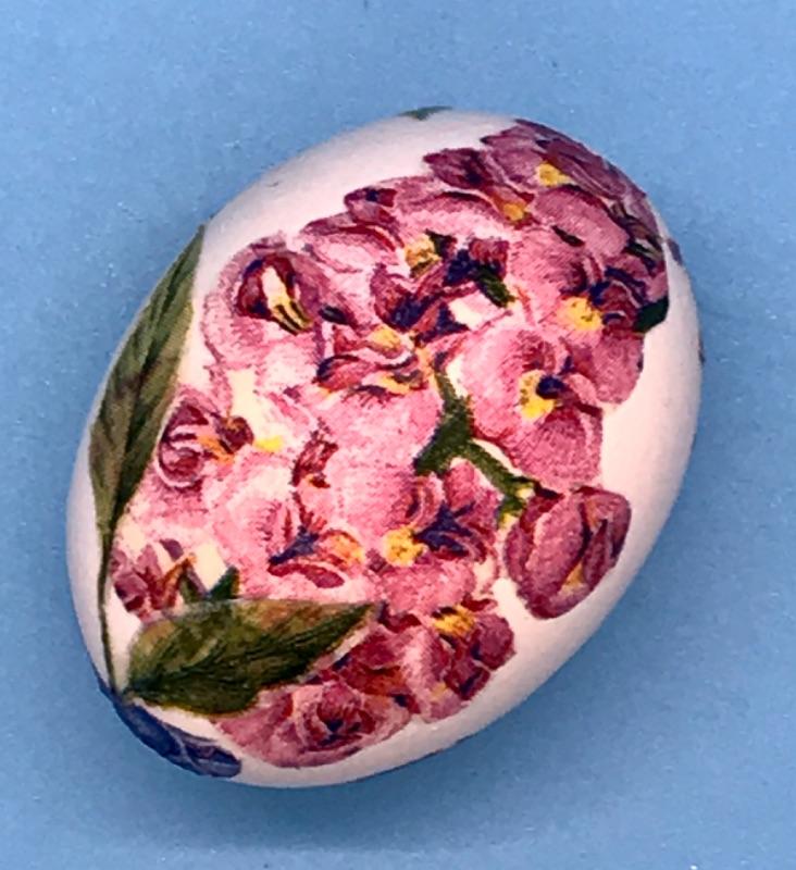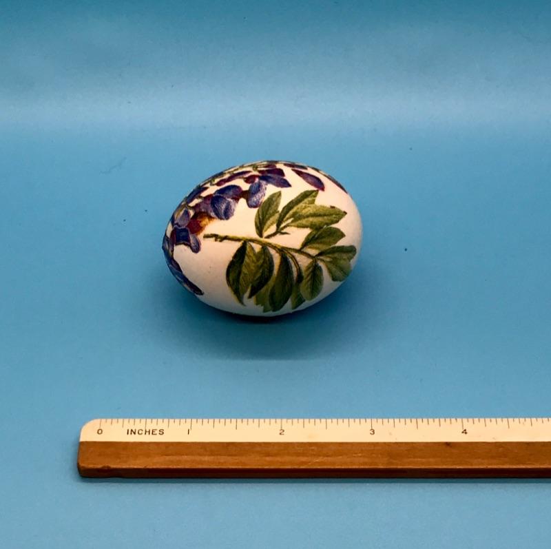 Delicate hand painted egg. Colorful floral images. Under 3”.
