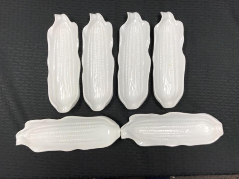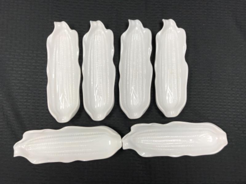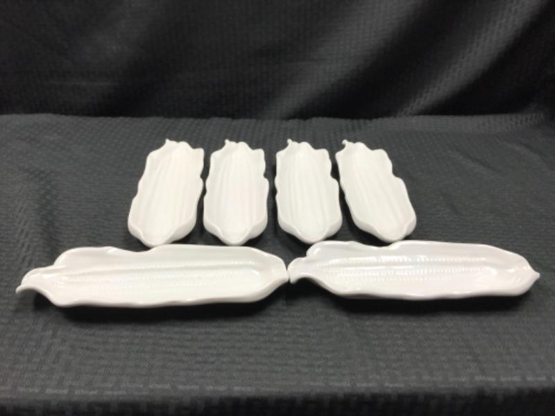 CALIFORNIA POTTERY USA #686 white corn cob  plate 6 pc set