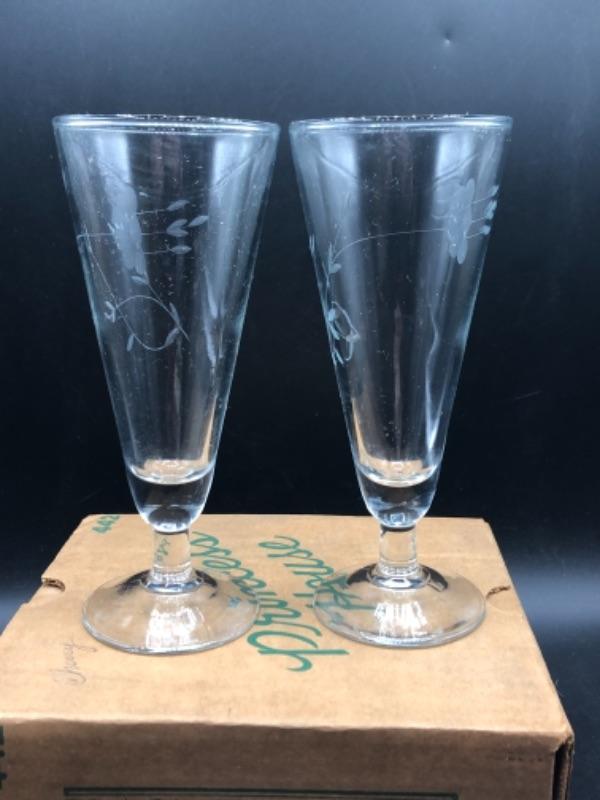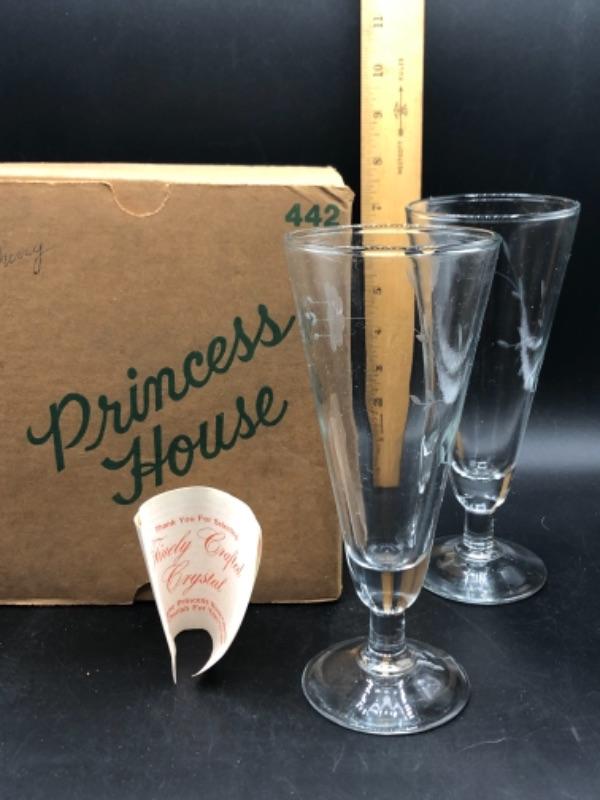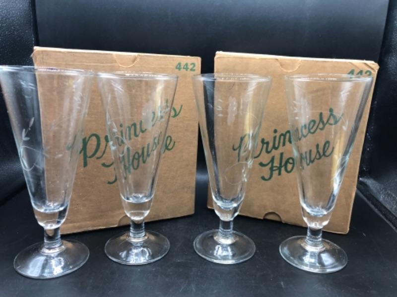 Princess House Heritage pilsner glasses. Set of 4, come 2 in a box. Good condition.