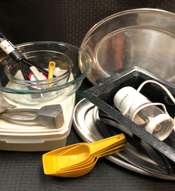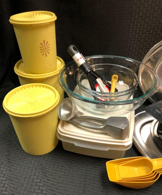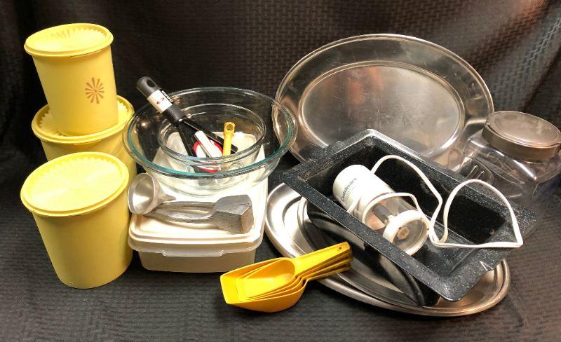 Mixed lot of kitchenware. Everything photo'd included. Bakeware, vintage canisters, utensils included.