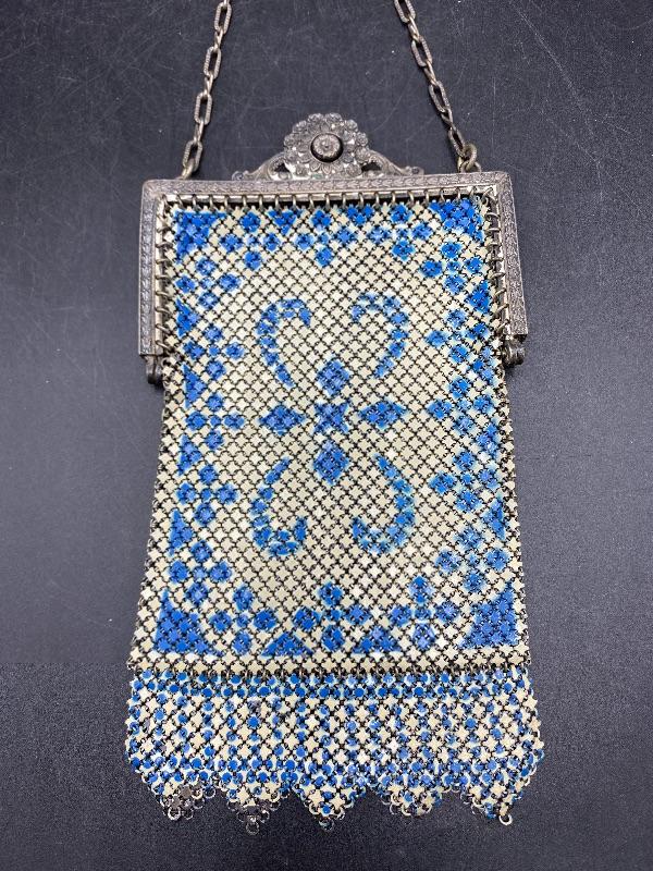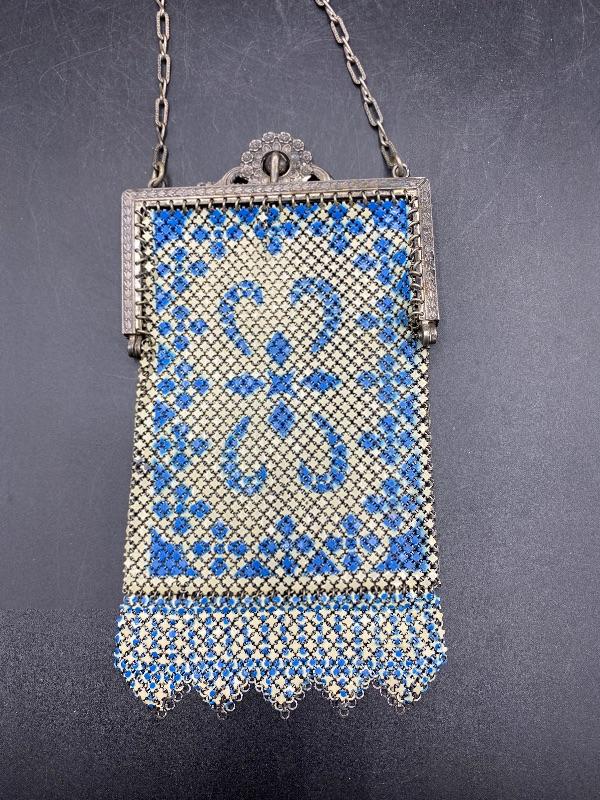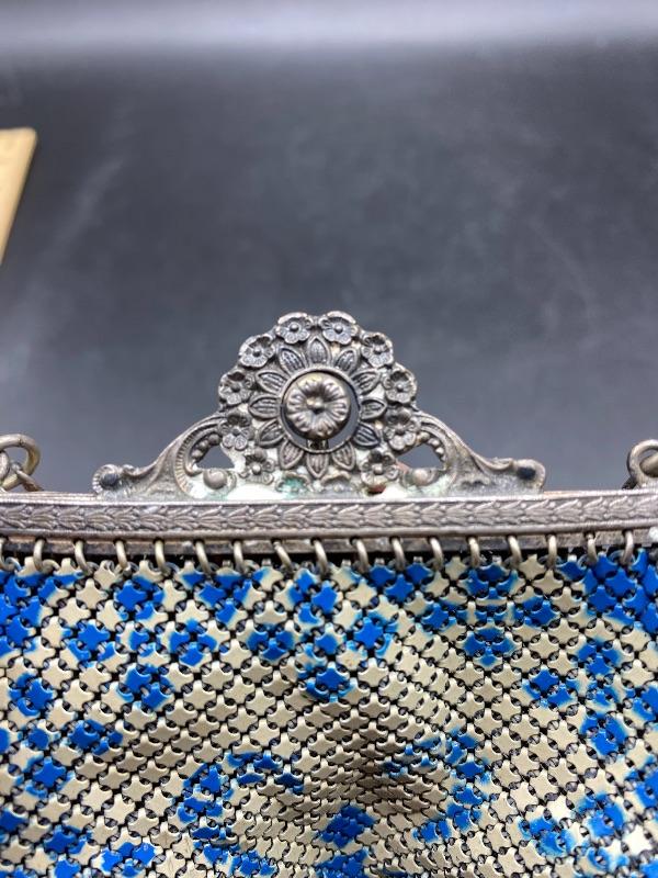 Vintage Antique Blue Art Deco MANDALIAN Enamel Mesh Purse YD#020-1220-00344