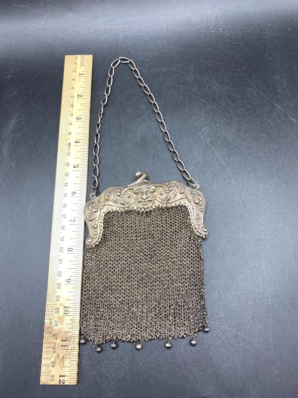 Antique Sterling Chainmail Mesh Purse Hallmarked Stamped YD#020-1220-00343