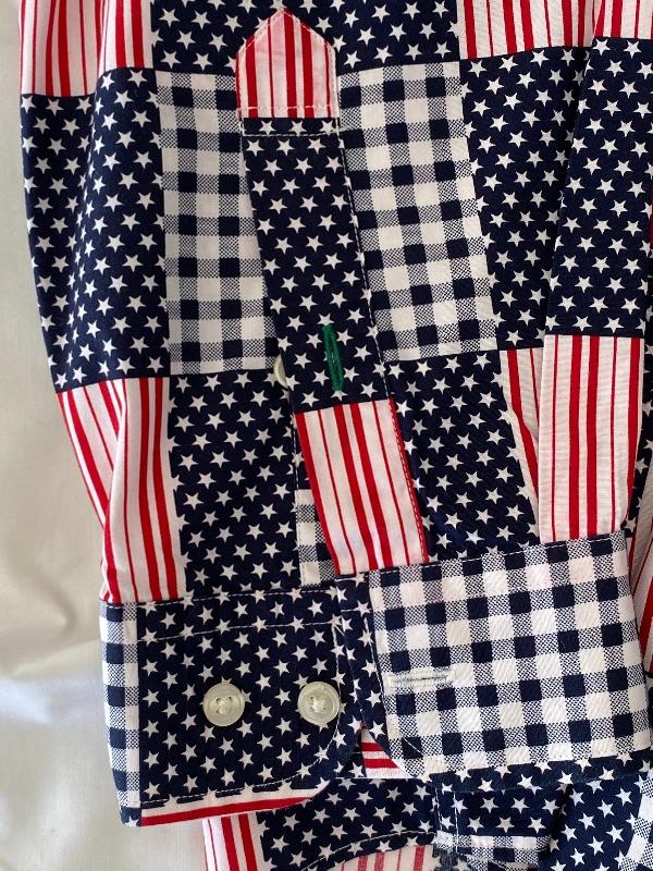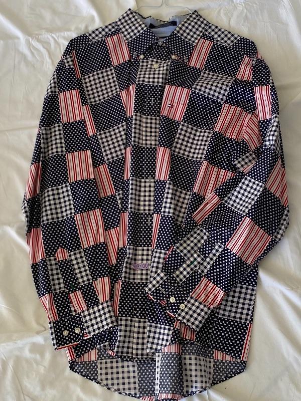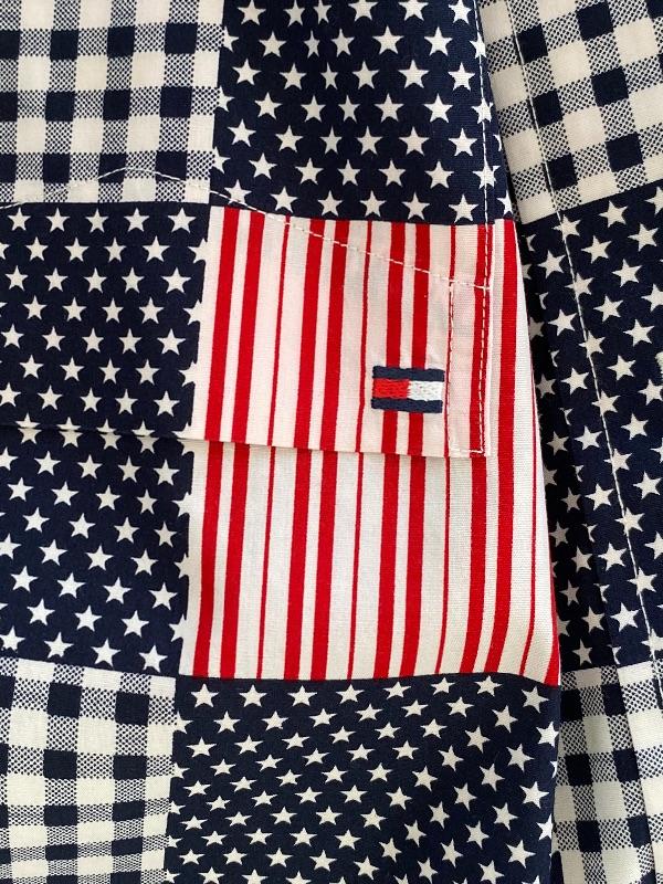 Vintage and Rare!! Tommy Hilfiger American flag patchwork button front shirt. Long sleeve. Men's size XL. Does have a little discolor near the bottom and inside of collar.