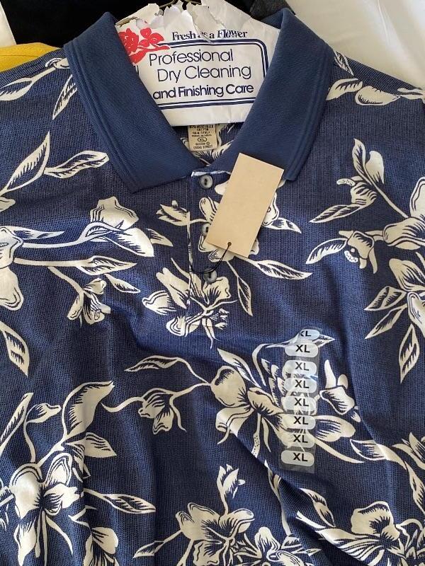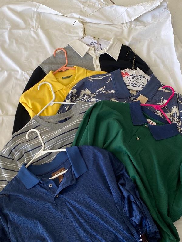 Lot of 6 men's polo style shirts. 5 short sleeve, 1 long sleeve. One shirt is just a striped t shirt. All in good condition. Size XL