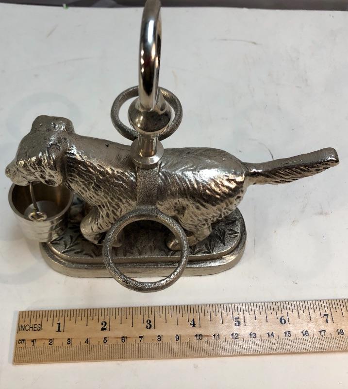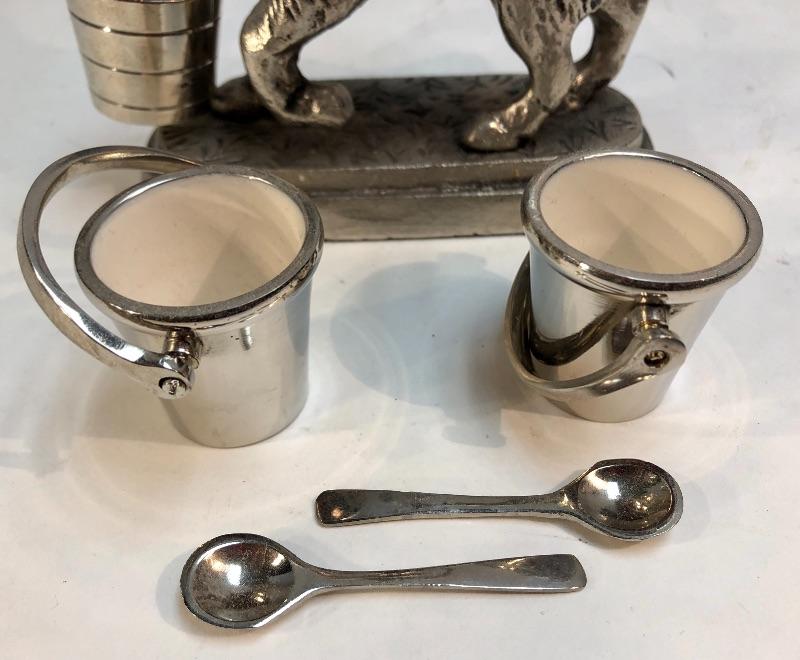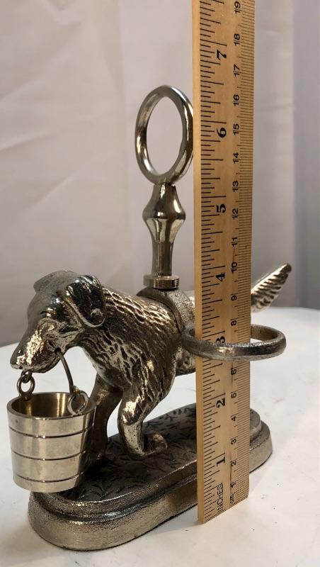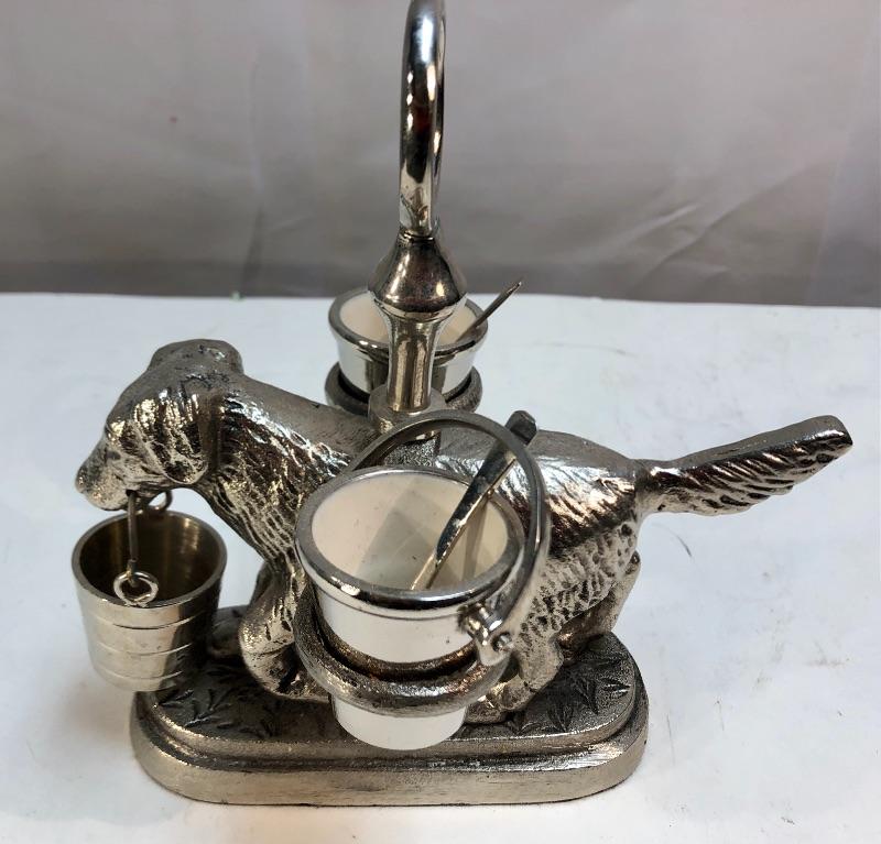 This charming Dog Salt & Pepper Cellar is based on a vintage silver version from Bunny's best-in-show collection. Side pails are enamel-coated inside and lift out for easy serving and filling. In England, front pail was traditionally used for serving dry mustard. Good condition. Felted bottom.