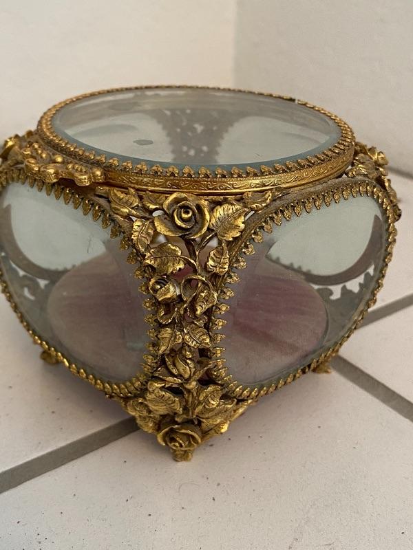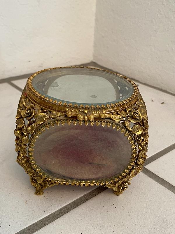 4" Gold Gilt & Glass Ormolu Trinket Jewelry Casket Box by Matson YD#022-0151