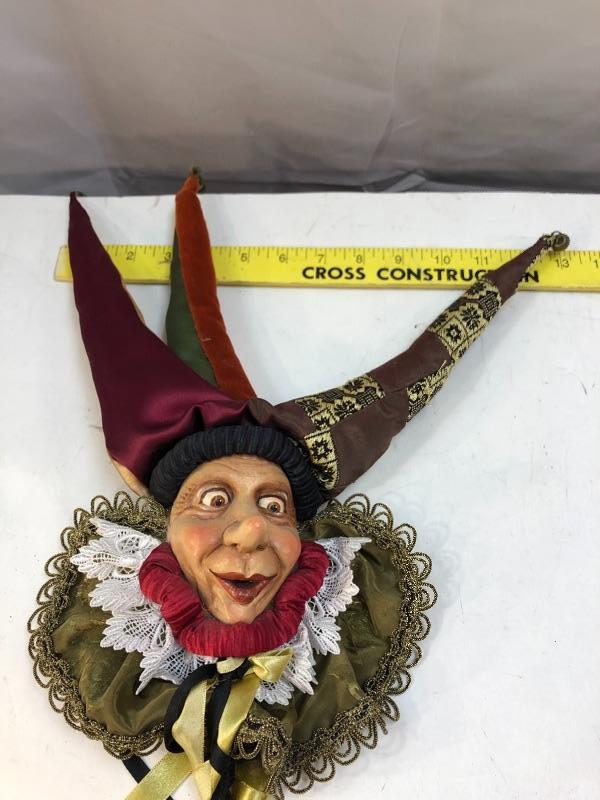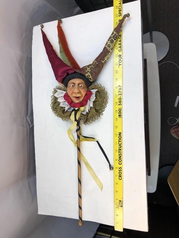 Katherine's Collection jester head stick puppet. Good condition. About 28" in length.