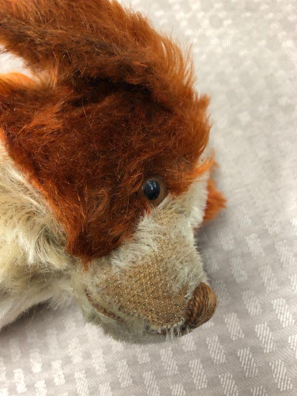 Vintage Steiff dog pull toy. Looks like a white and tan spaniel dog. Missing Steiff tags but still has the ear button. Good vintage condition. Displays nicely. About 12"x17". Dated 1930s.