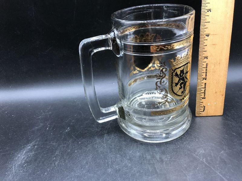 Set of 12 Glass Beer Tankard Mugs Gold Lion Coat of Arms Medieval YD#022-0359