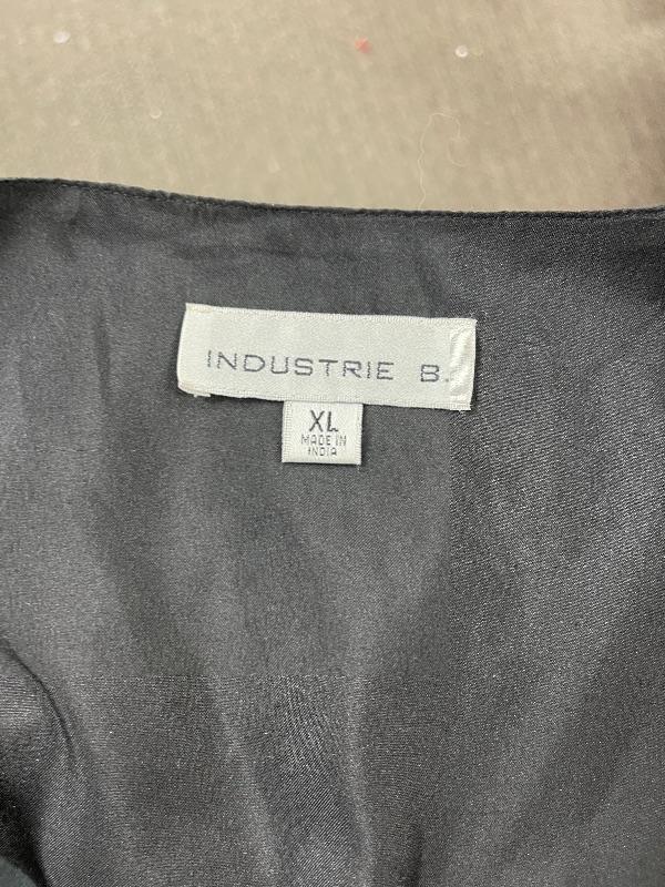 Colorful flower embroidered black coat dress jacket. Single button close. Red, yellow, and purple flowes. Fringed hem and cuff. Size XL. Made by Industrie B
