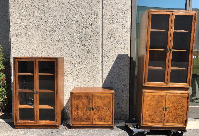 Matching Glass Front Wood Cabinets, 4 Pieces