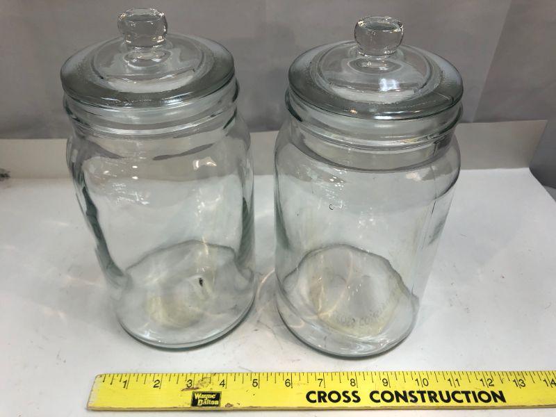 Pair of Large Clear Glass Apothecary Canister Jars