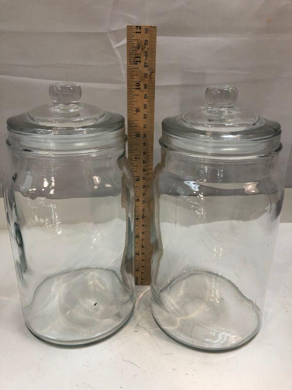 Pair of clear glass apothecary canisters jars. About 10" size. #022-0472