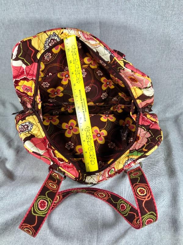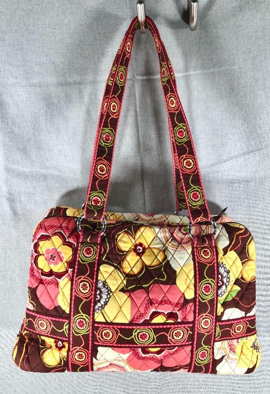 Vera Bradley shoulder bag in Buttercup pattern. Brown with yellow and pink floral pattern. Like New. #020-02212a12