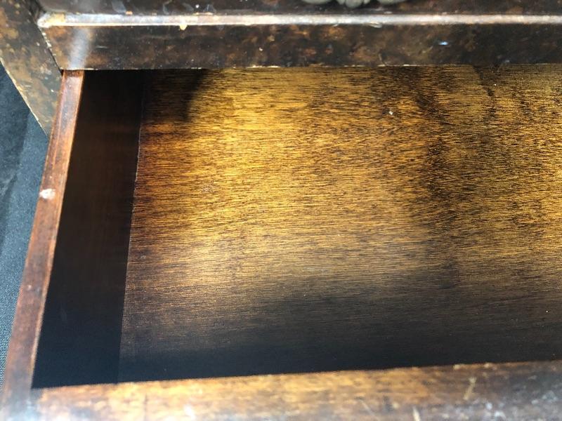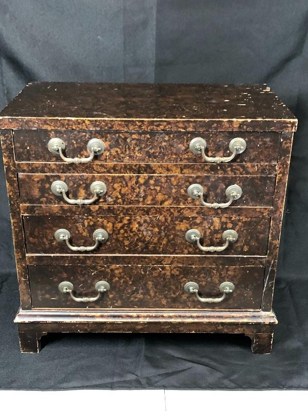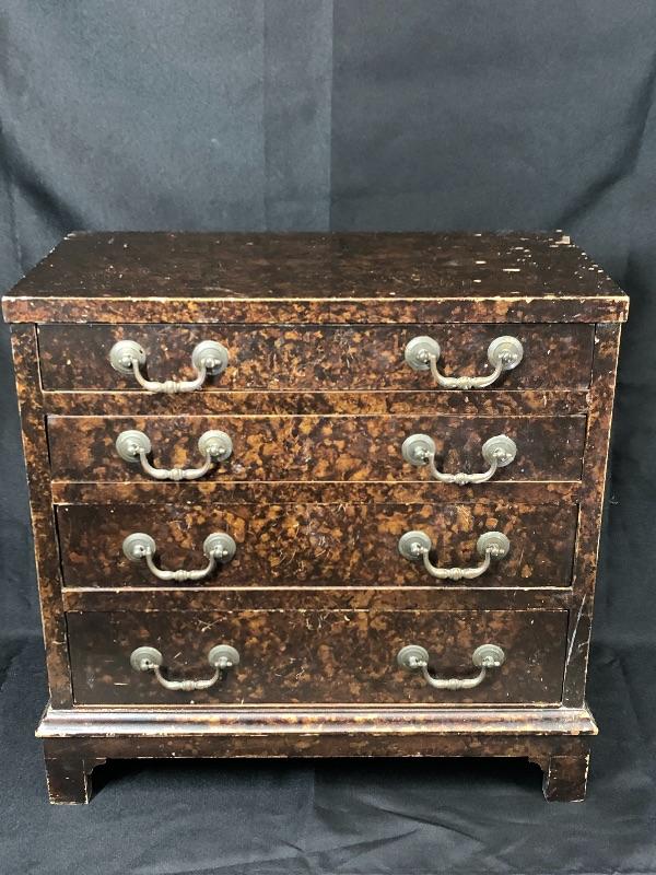 Vintage wood multi drawer chest. 4 slim drawers. Some wear along edges. Over 12" tall. #499a67