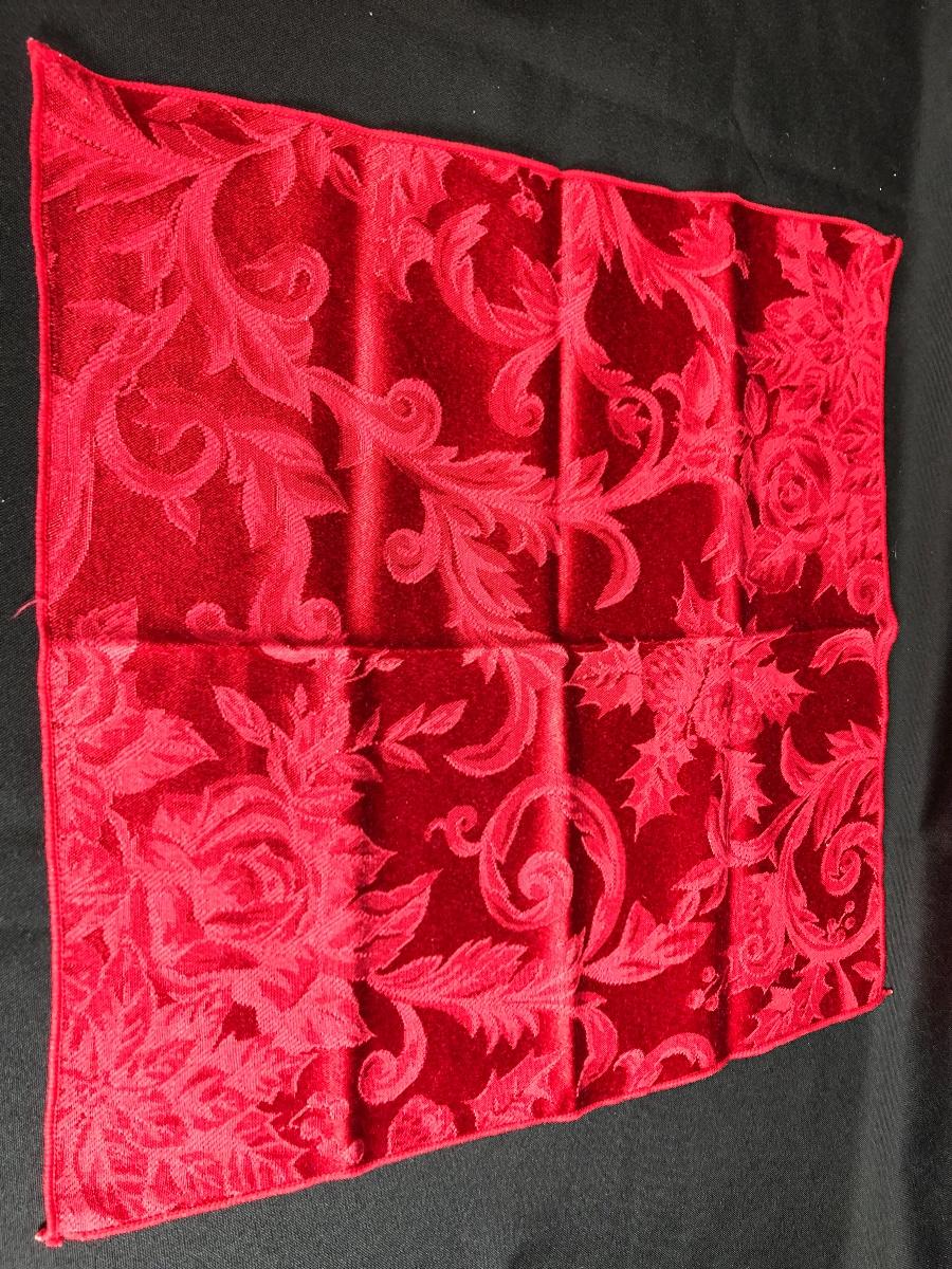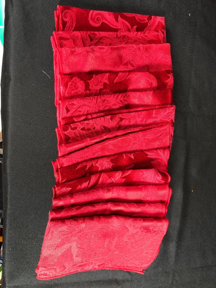 Set of red linen dinner napkins. Previously used, no major spots or stains.