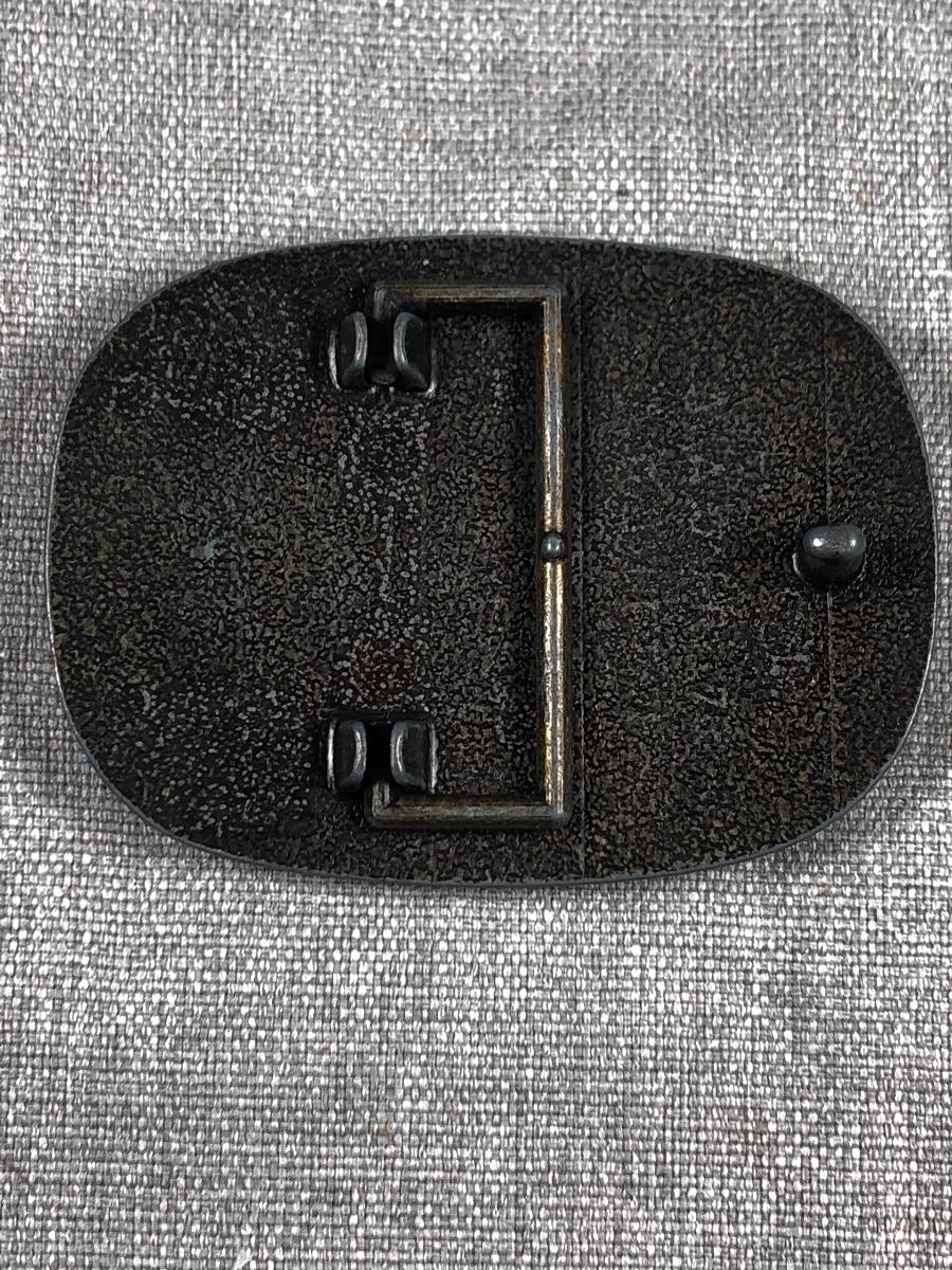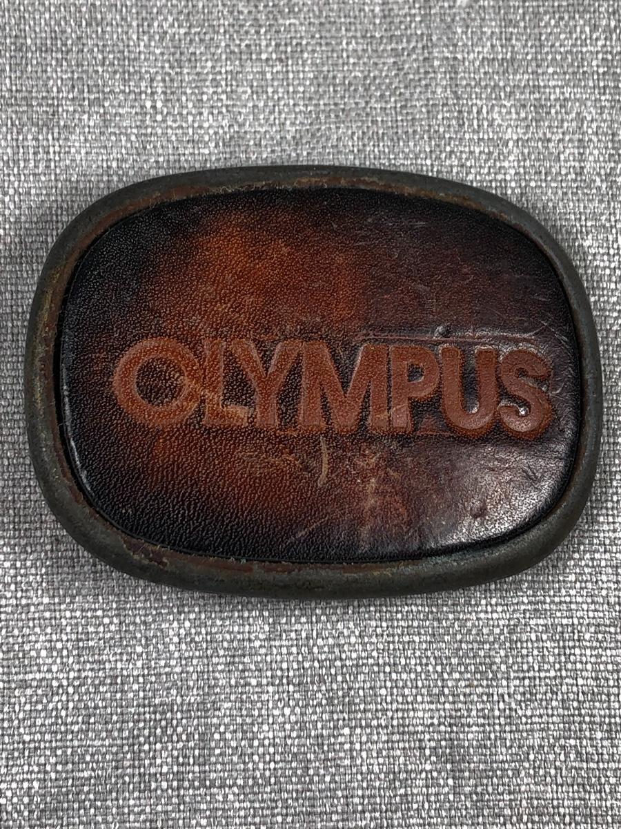Vintage "Olympus" stamped leather and metal belt buckle.