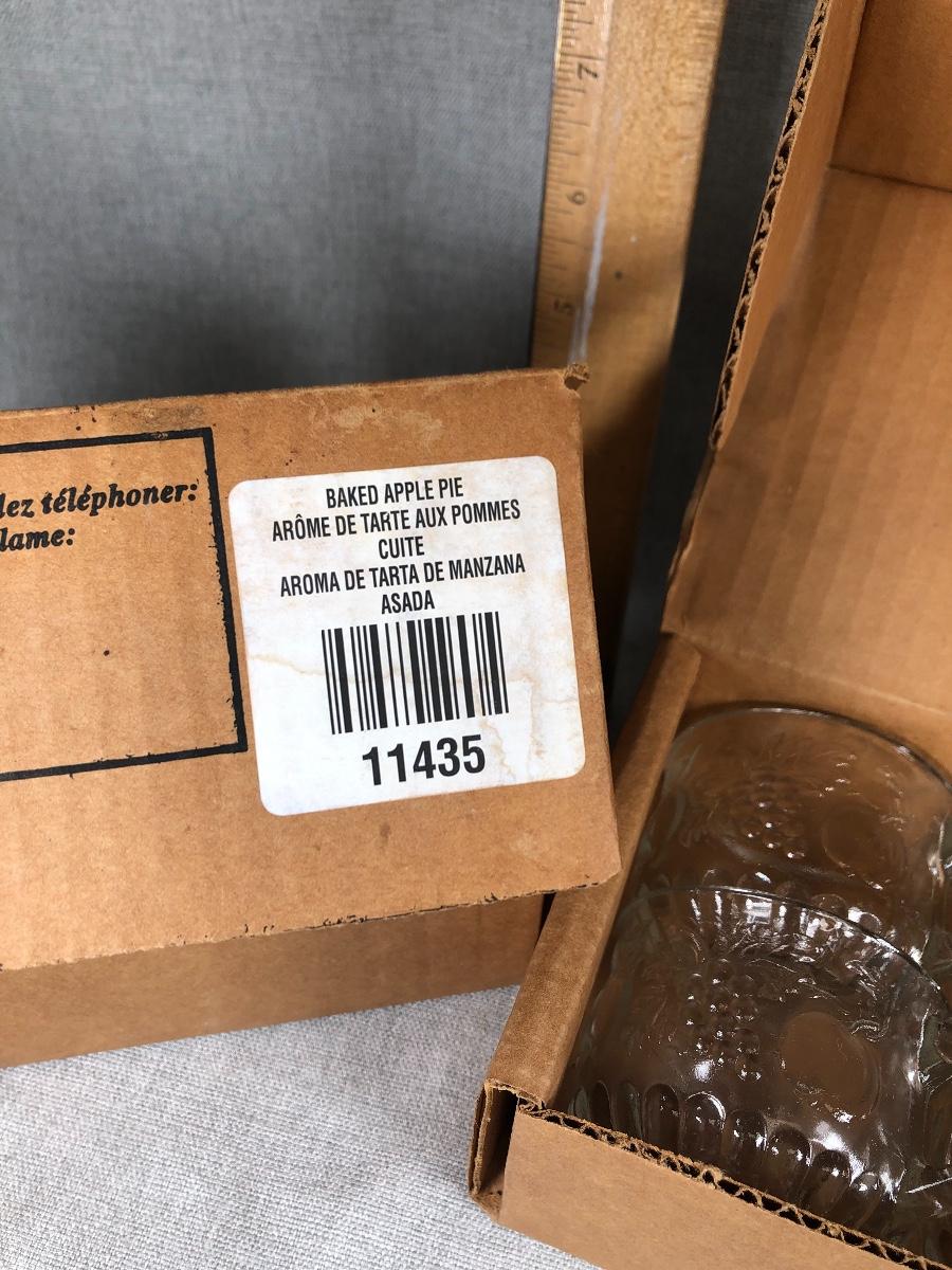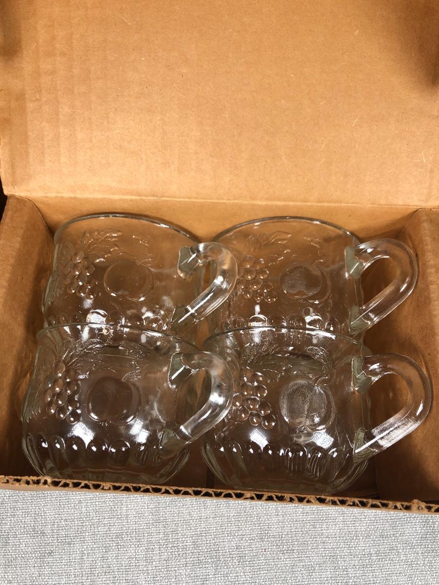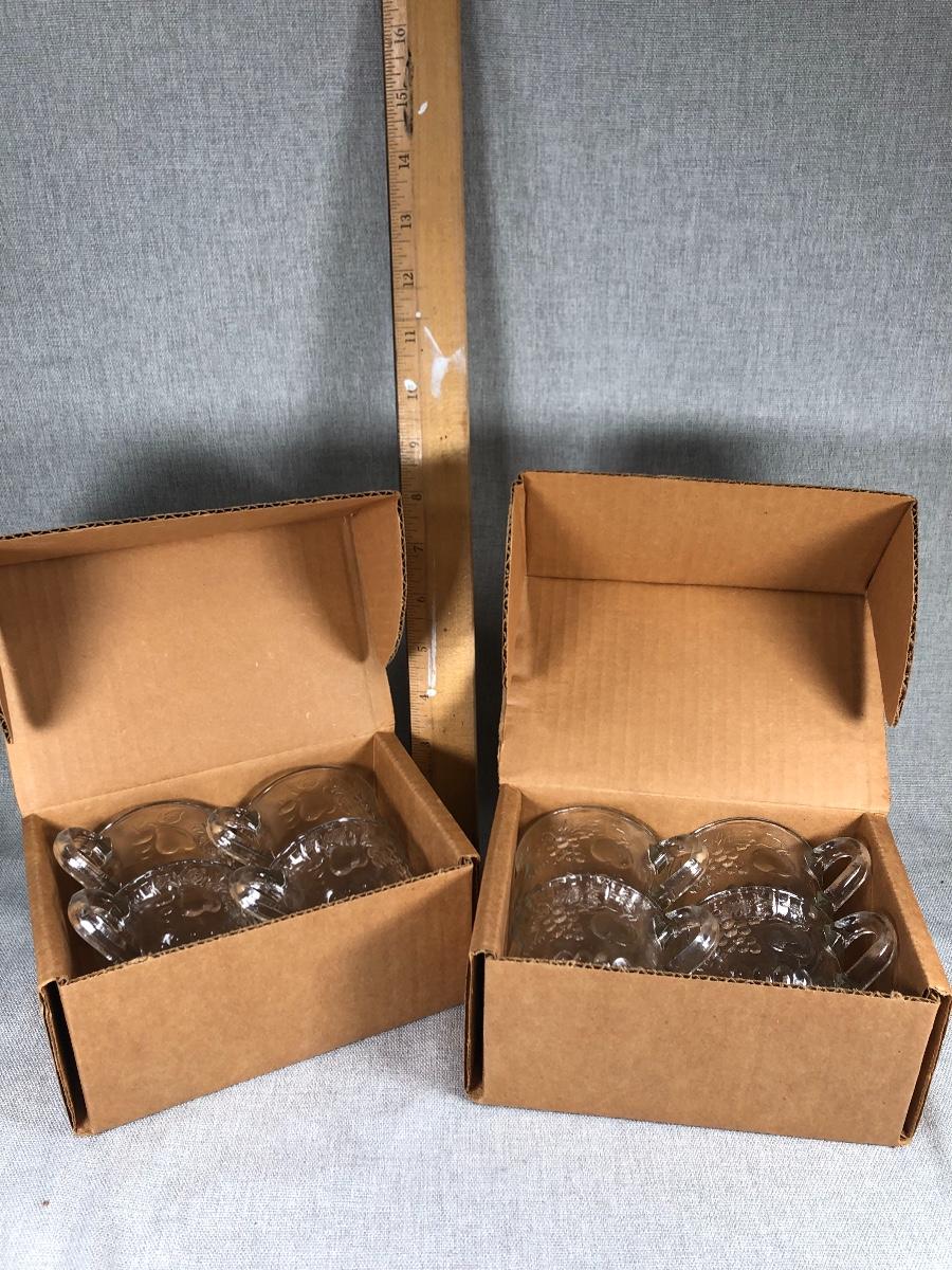 Set of 8 vintage glass punch cups. Baked Apple Pie is the pattern name. Come in original boxes.