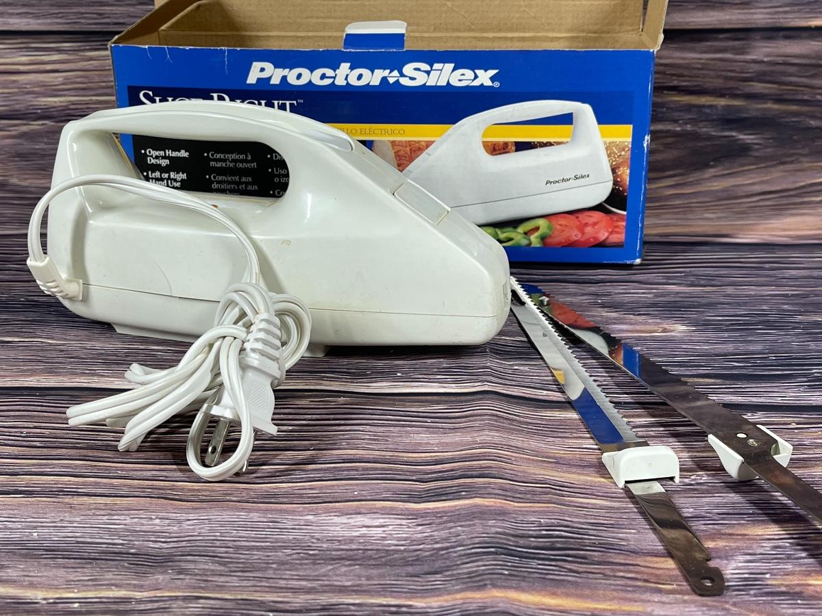 Proctor Silex electric knife. Comes in original box. Untested but looks in good lightly used condition.