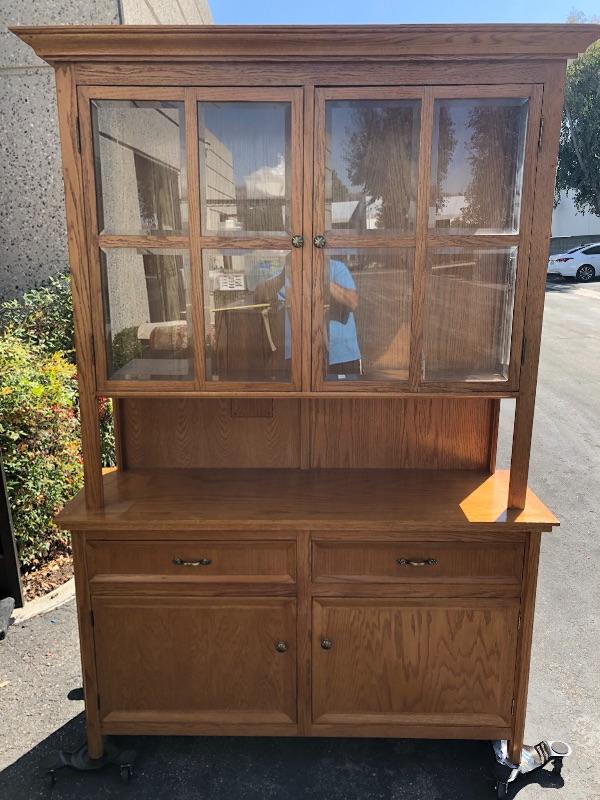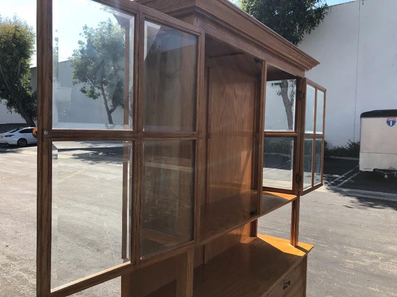 Medium Finish Oak Wood Cabinet with Glass Doors YD#020-1220-00004