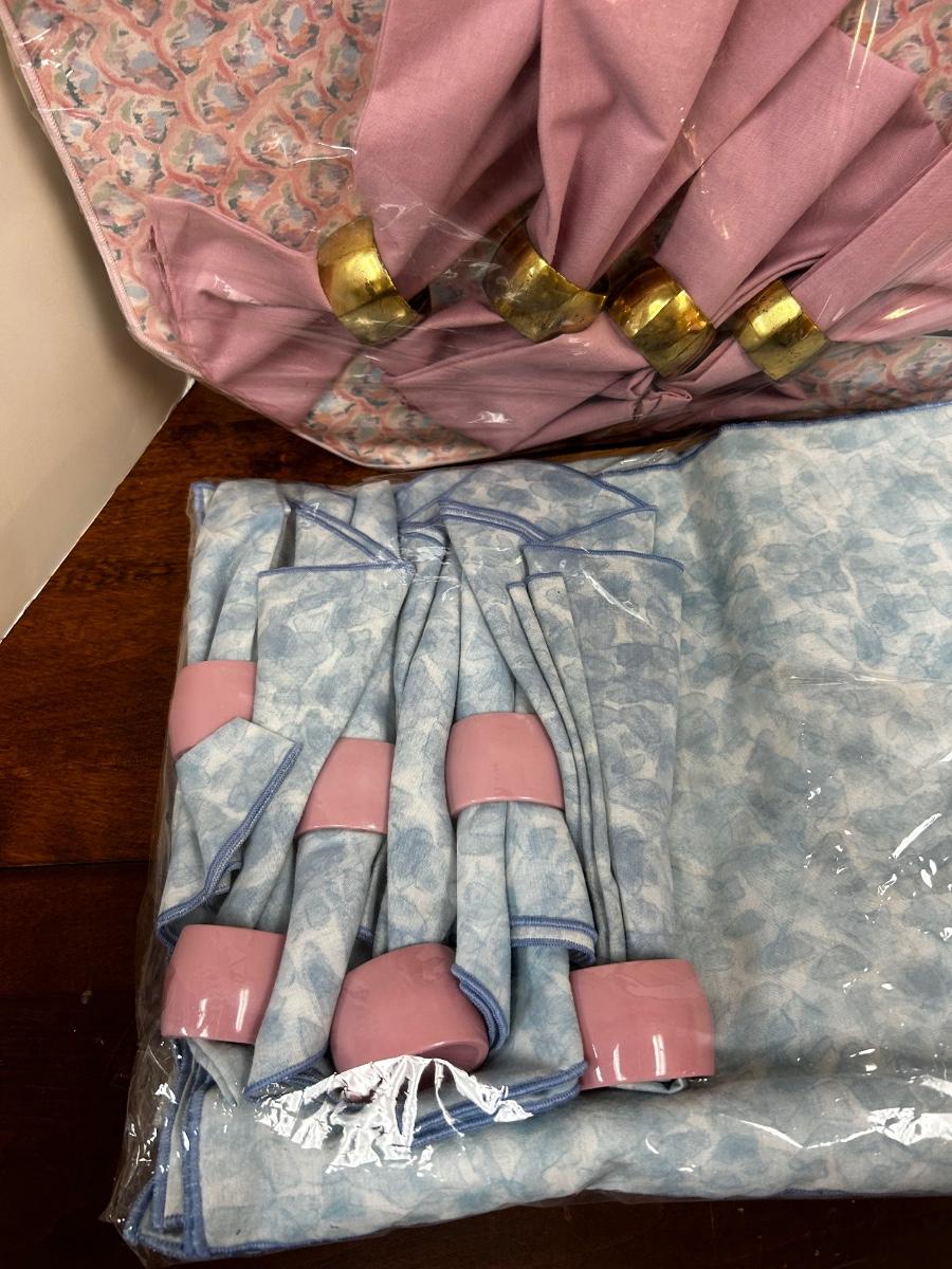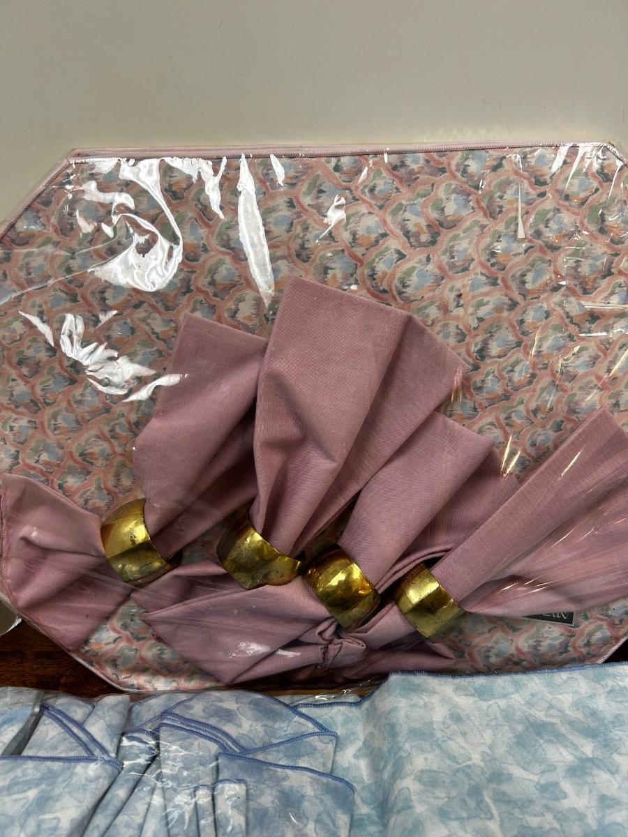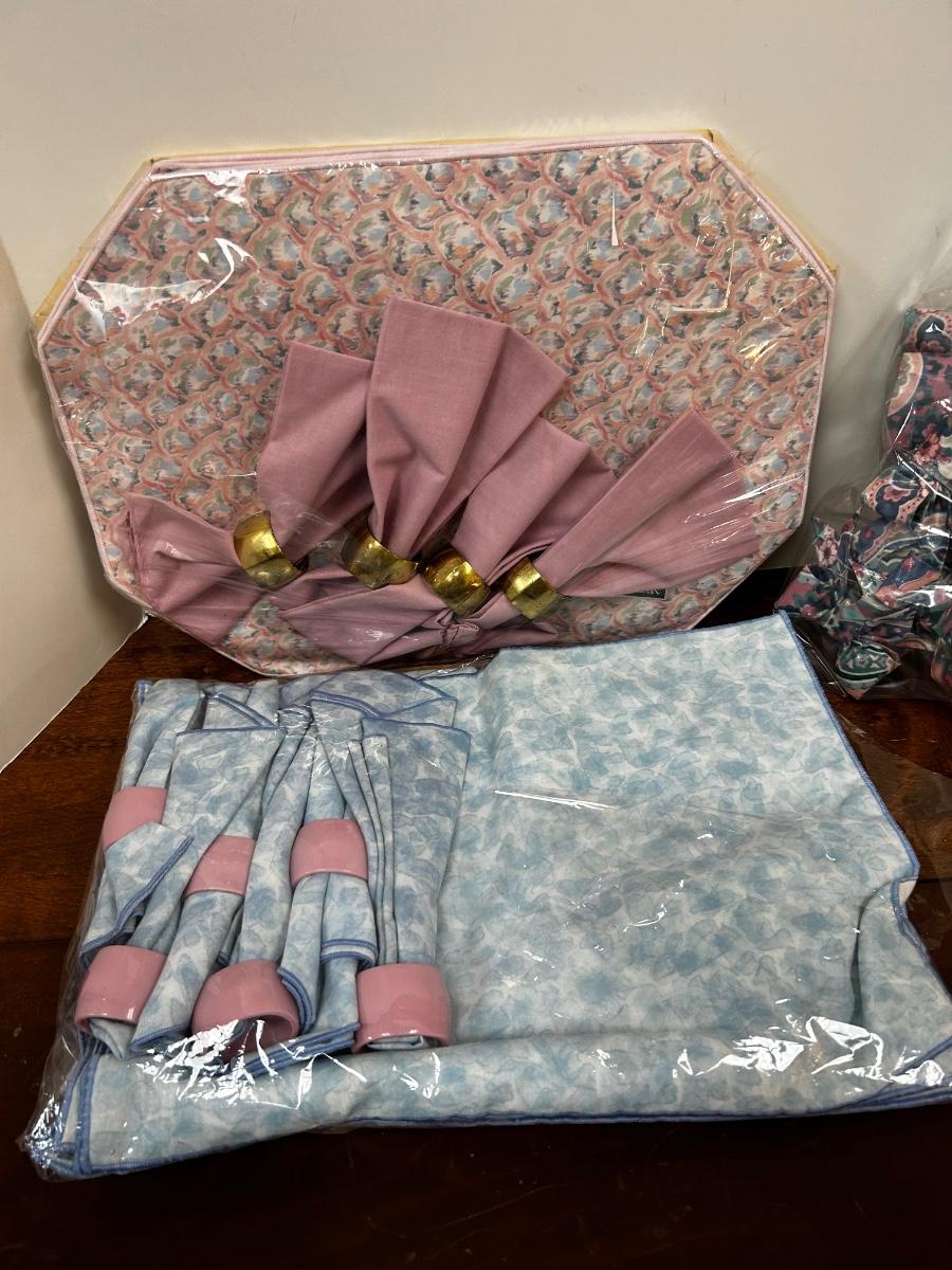 Pink and Blue Retro Table Linen Placemats Napkins Rings. In good condition.