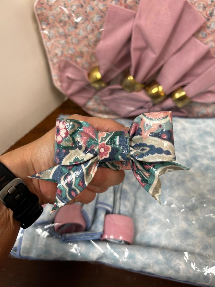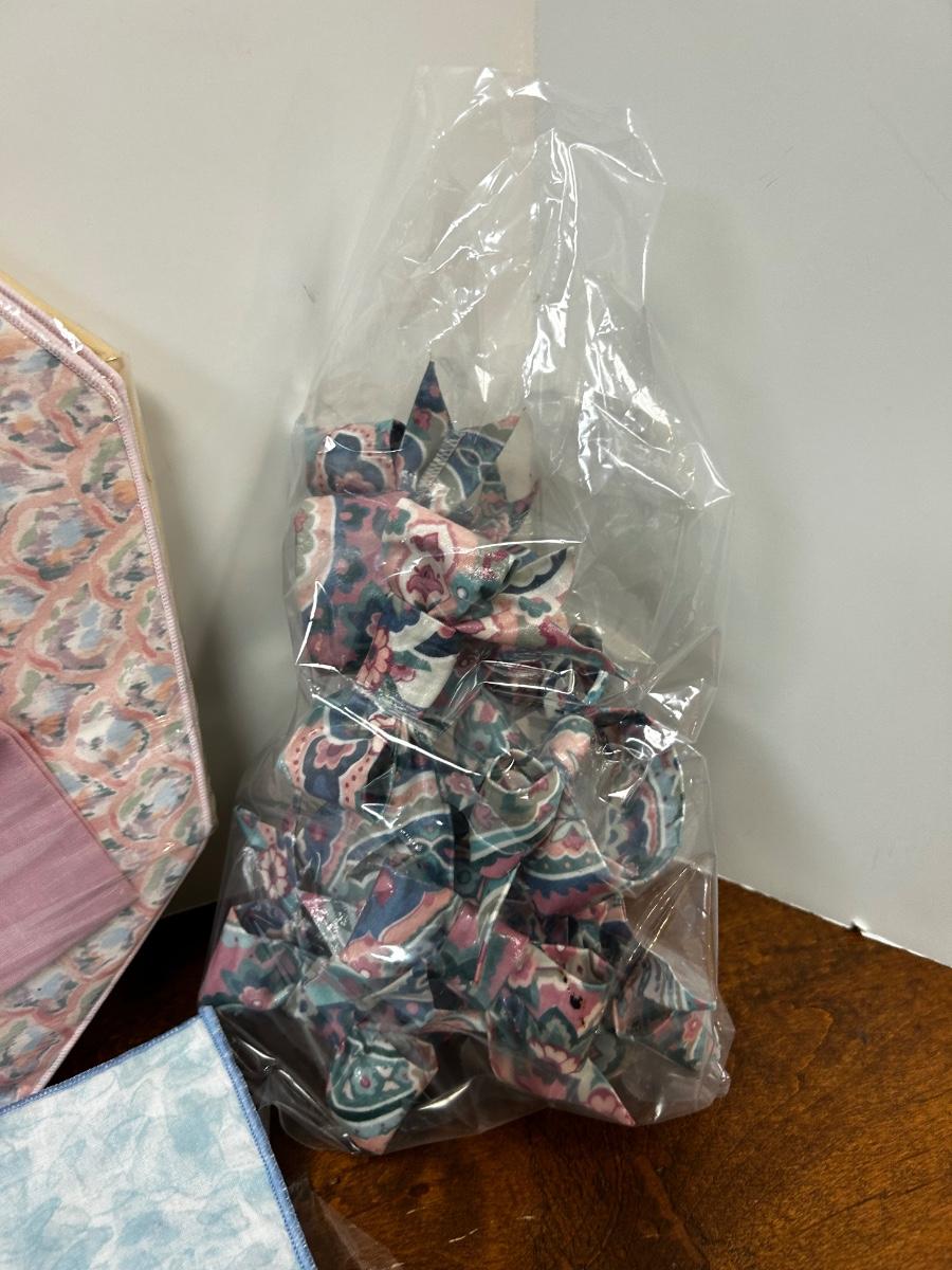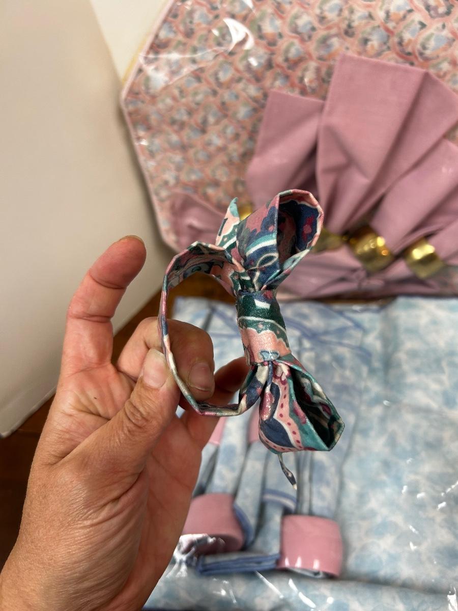 Pink and Blue Retro Table Linen Placemats Napkins Rings. In good condition.
