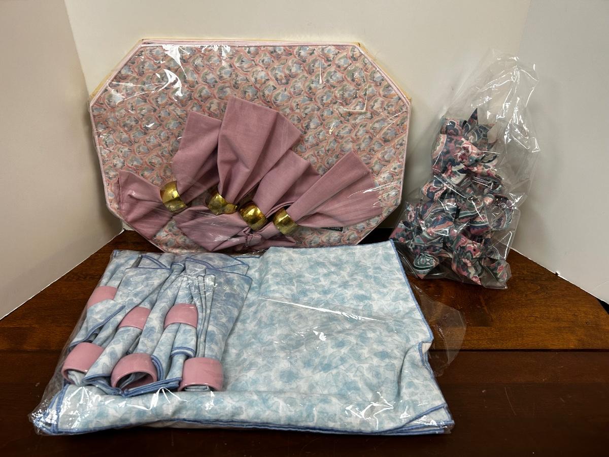 Pink and Blue Retro Table Linen Placemats Napkins Rings