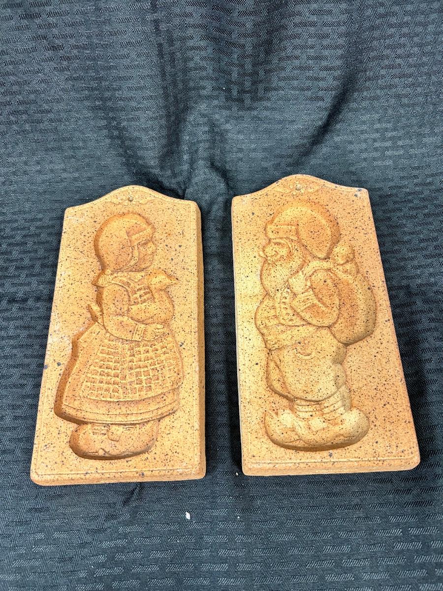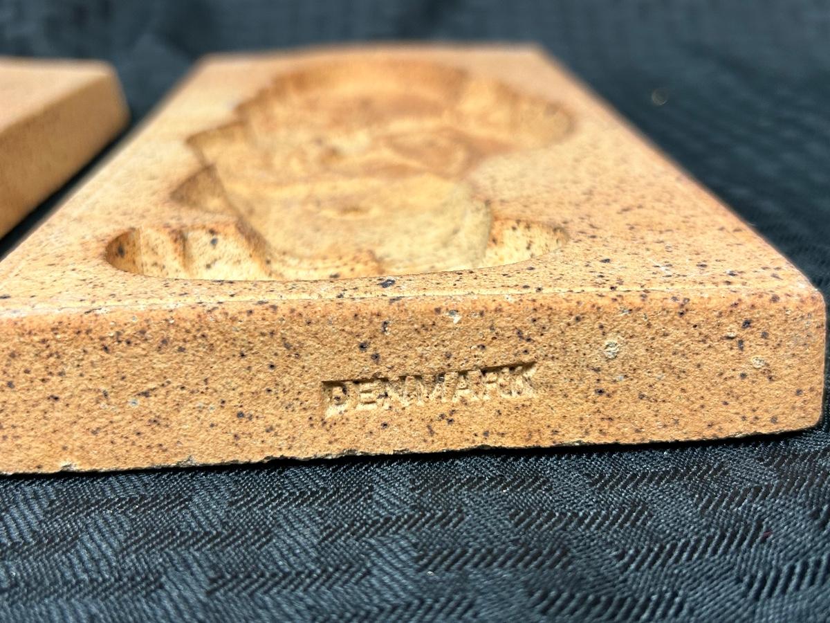 Pair of Brown Bag Cookie Art Stoneware Dessert Molds Denmark