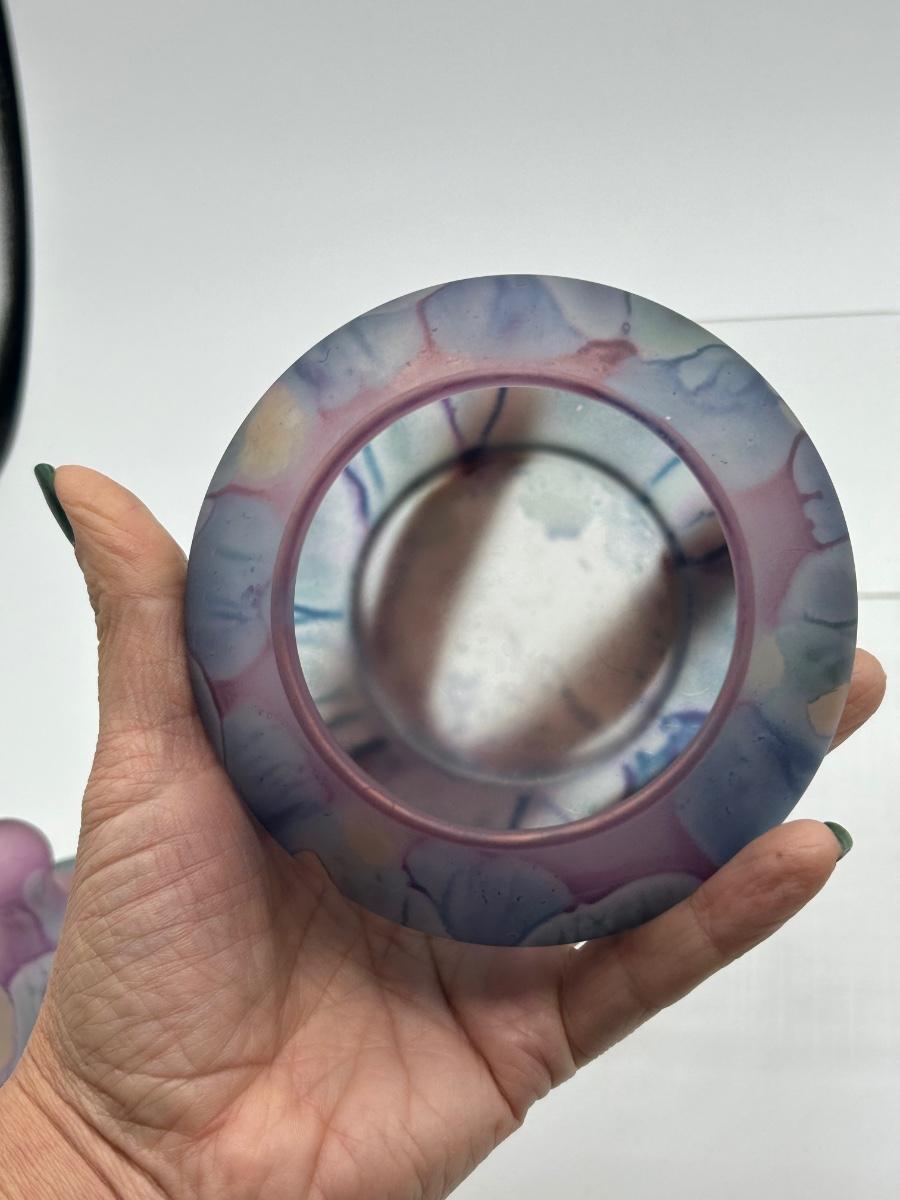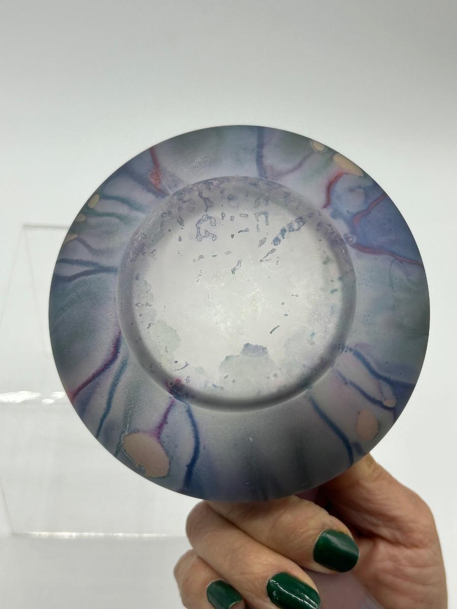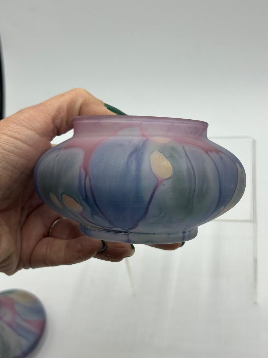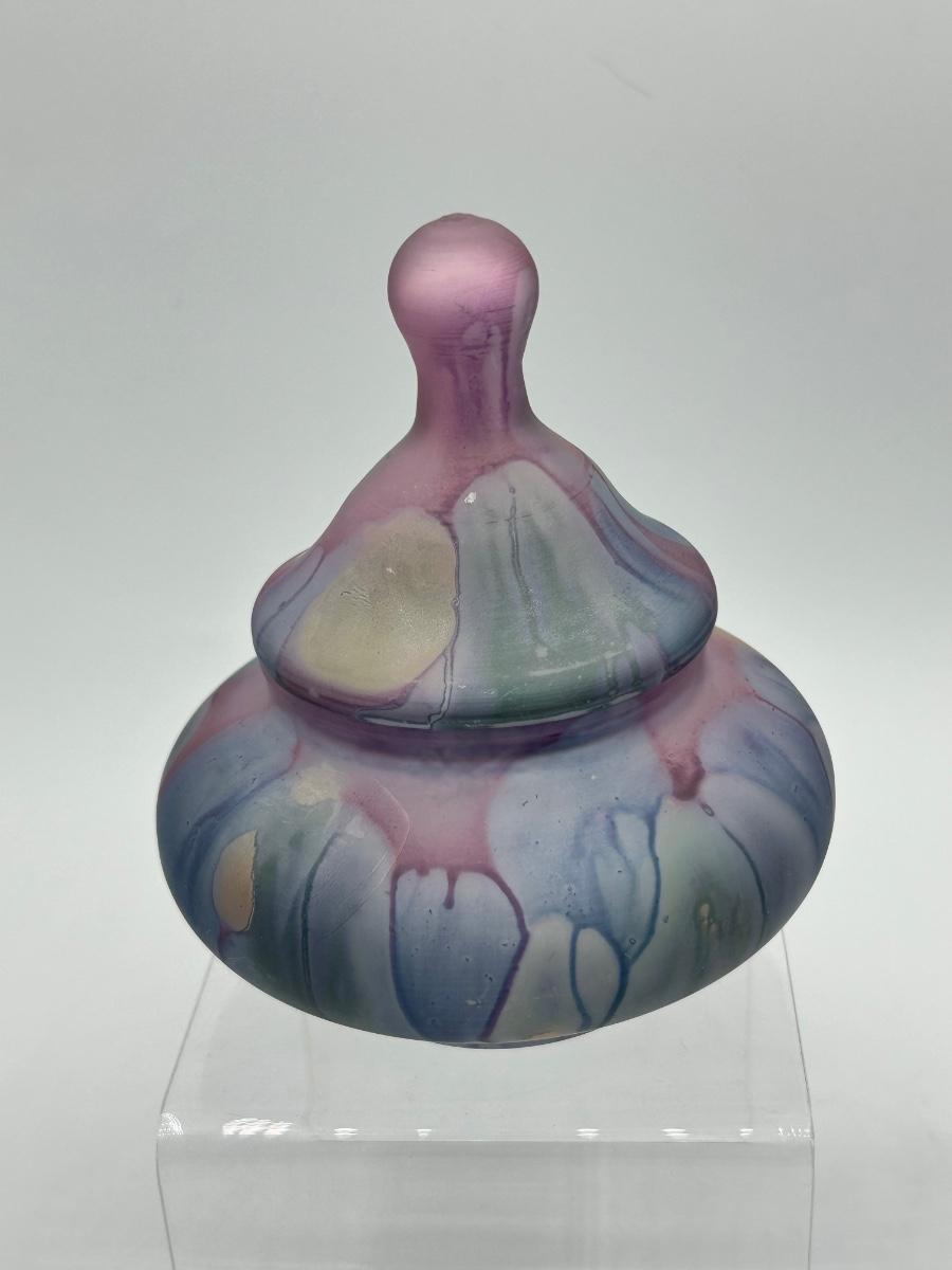 Retro Abstract Color Drip Apothecary Lidded Jar Trinket Dish Rueven Hand Painted Nouveau Art Glass Company