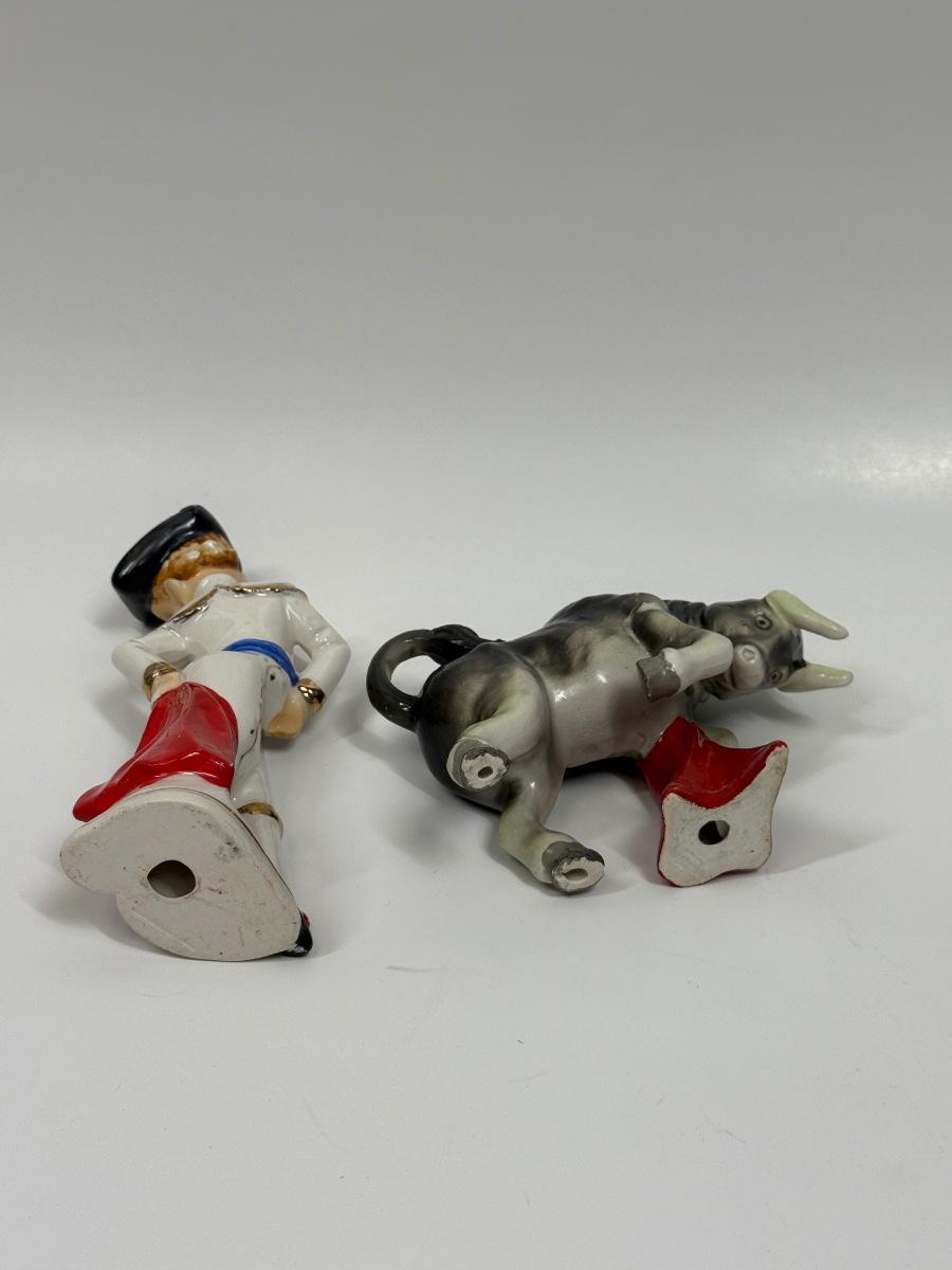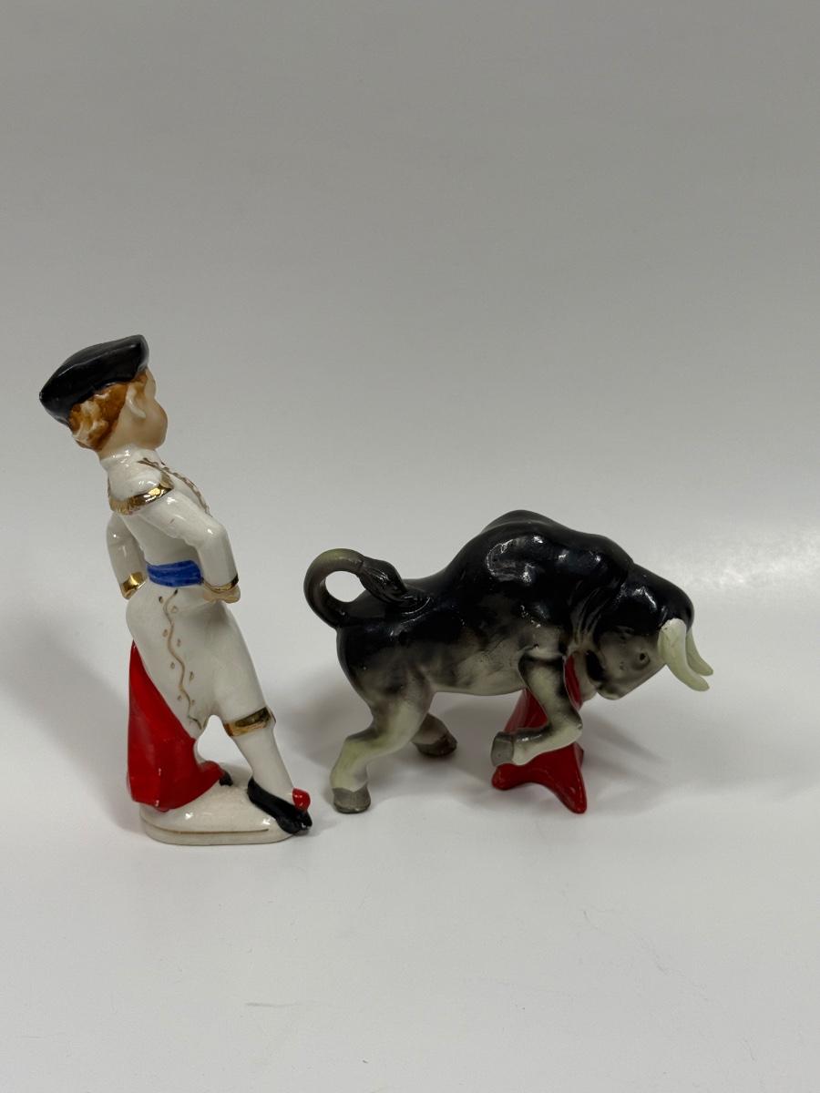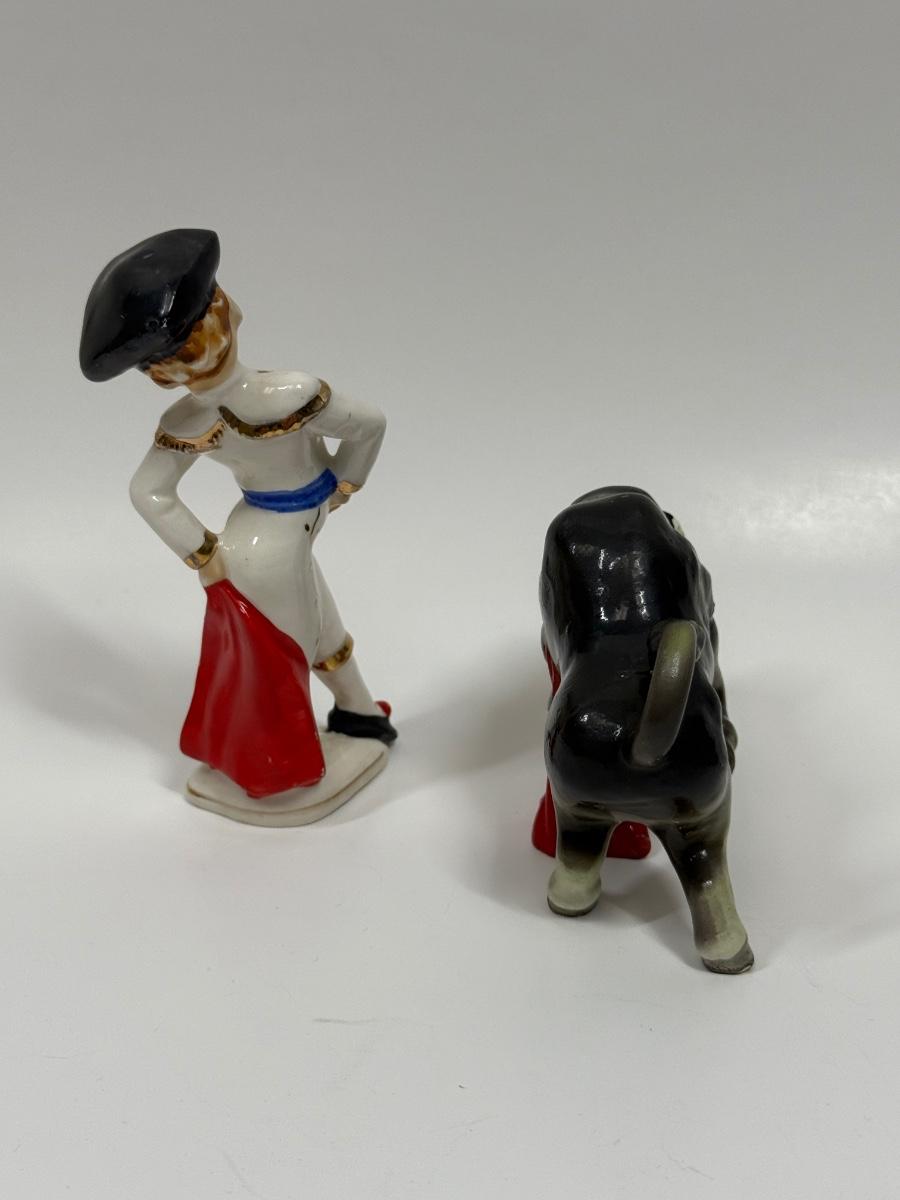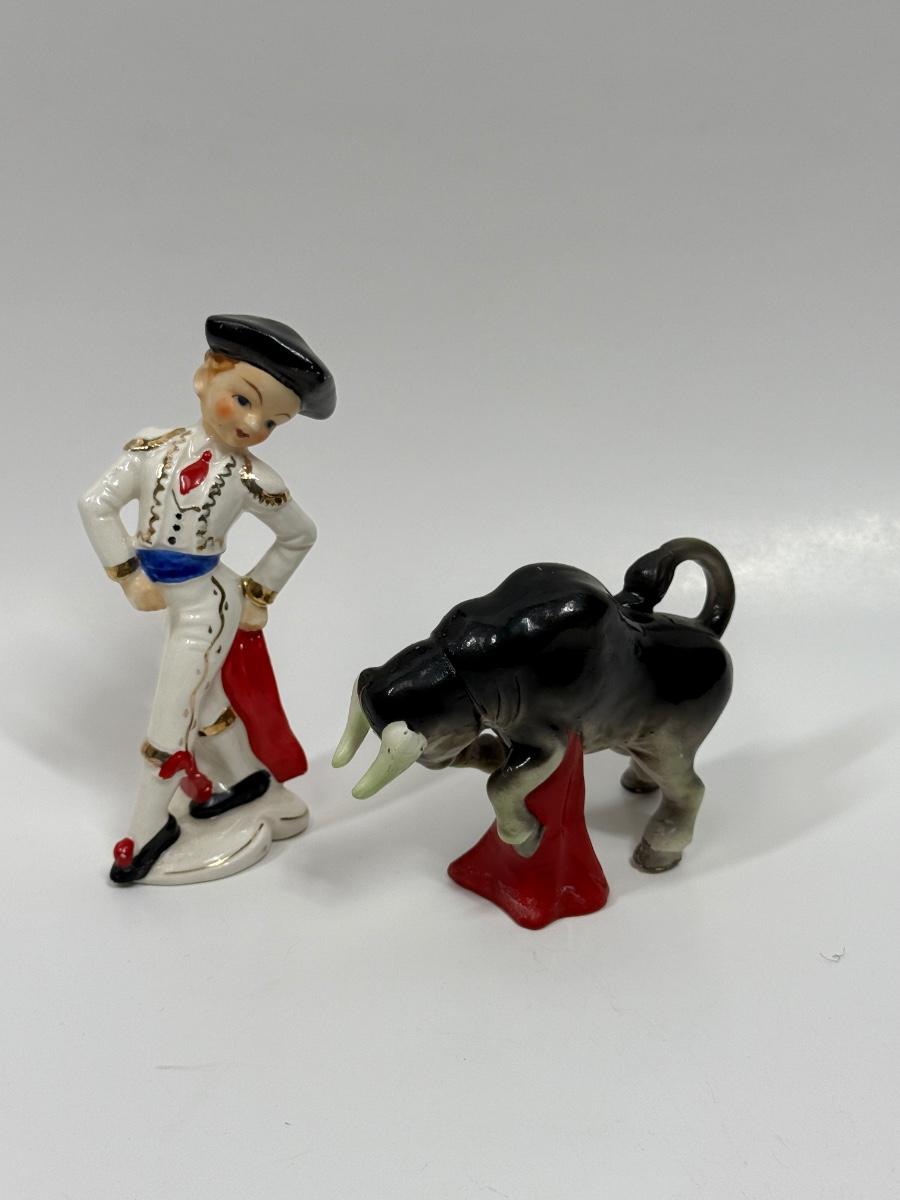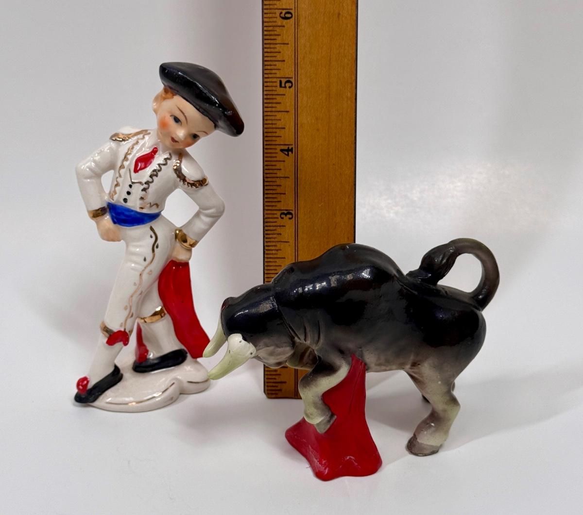 Vintage MCM Ceramic Bull & Matador Spanish Bullfighter Figurine Set 5" high