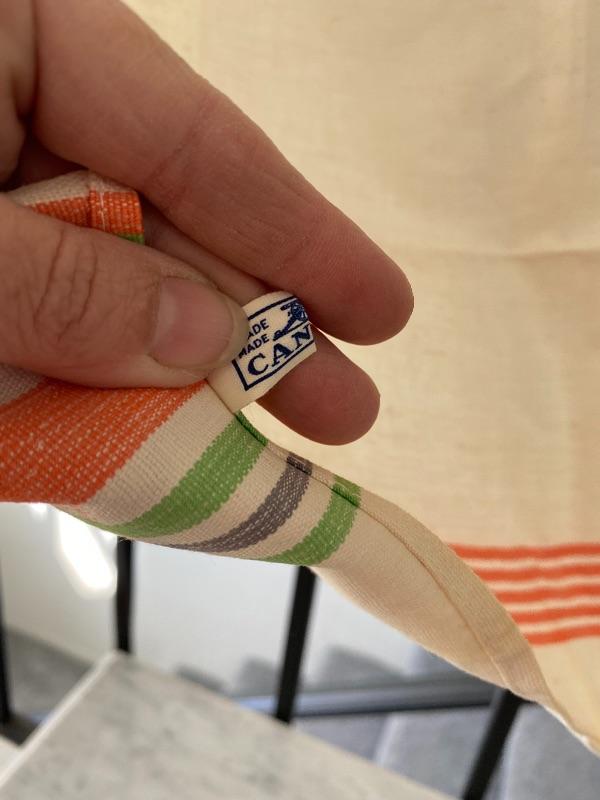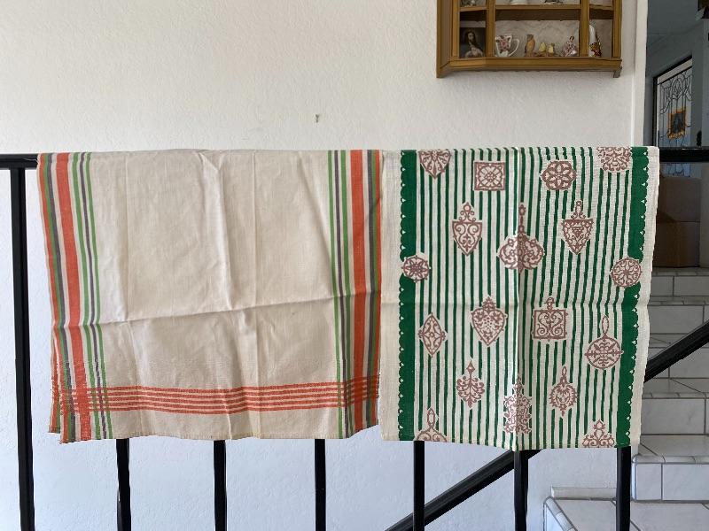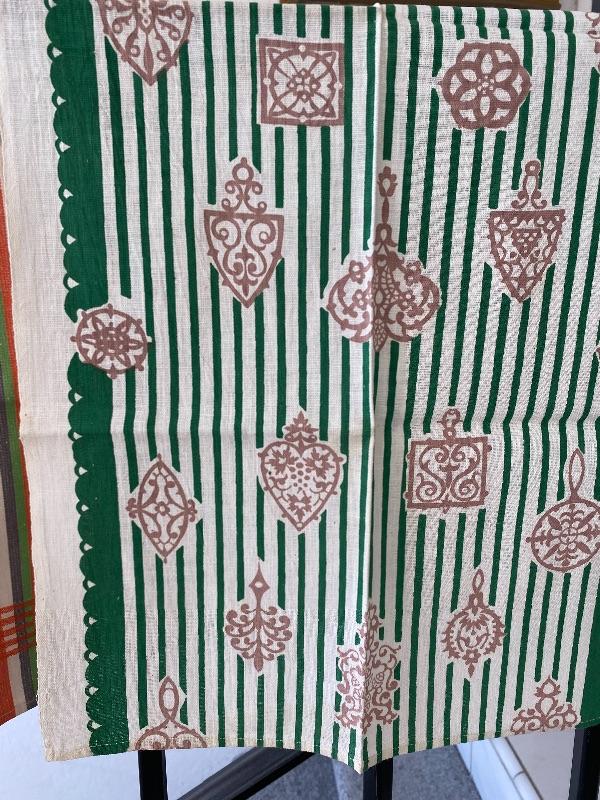 Pair of vintage dish towels. Both in good condition. The striped towel is from Cannon.