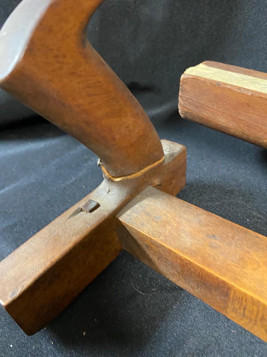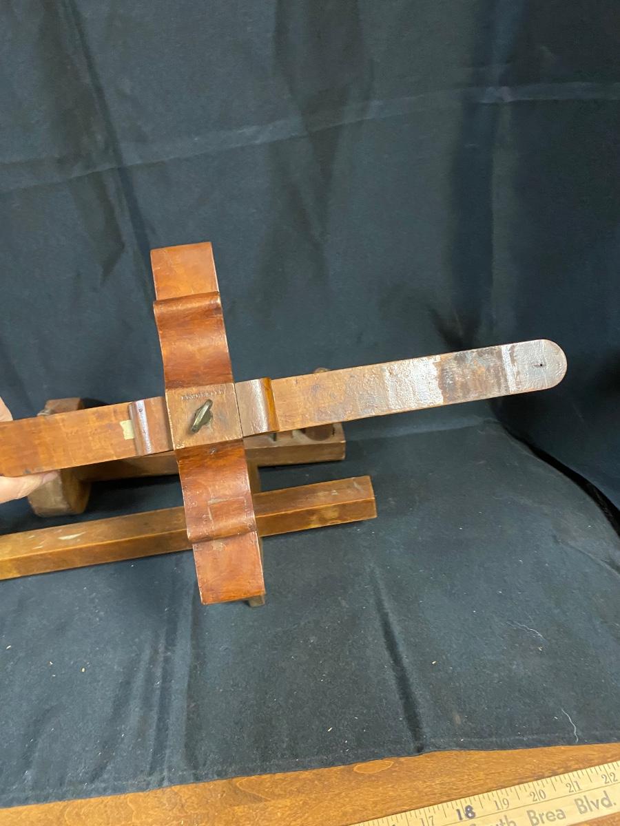 Four Piece Primitive Antique Wood Carpenters Tools Marking Scribe Gauges Rulers. In good, aged condition. The scribe with handle is damaged where handle meets arm.
