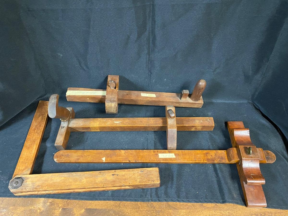 Four Piece Primitive Antique Wood Carpenters Tools Marking Scribe Gauges Rulers