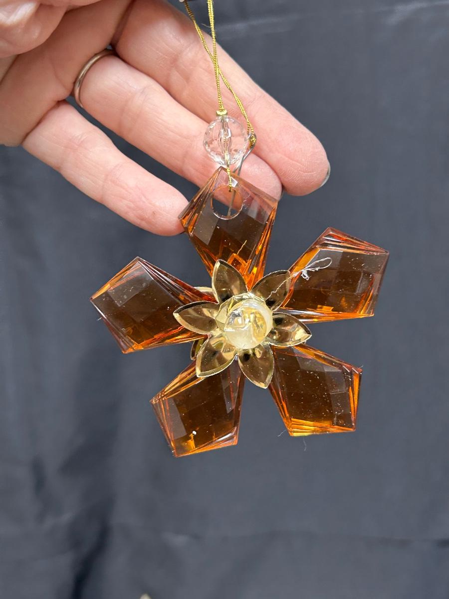 Vintage Plastic Prism Faceted Bead Flower Ornaments Amber Gold