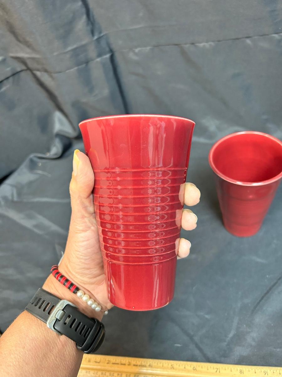 Pair of Vintage Maroon Burgundy Ribbed Franciscan Ware El Patio Pottery Drink Glasses Iced Tea Tumbler
