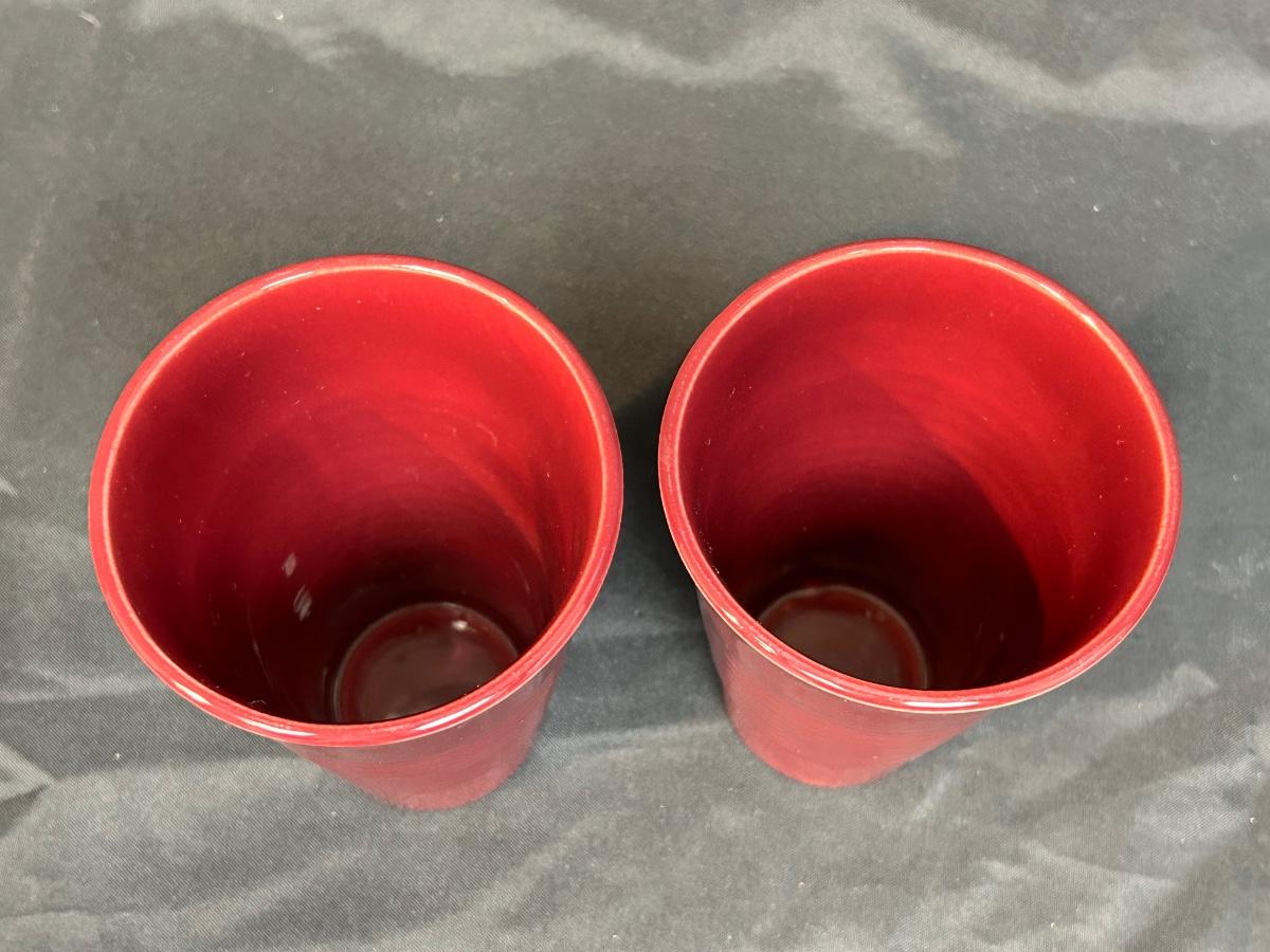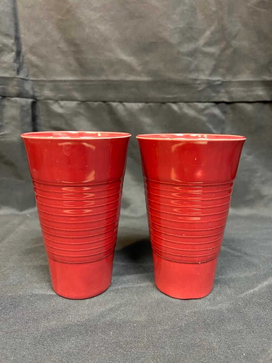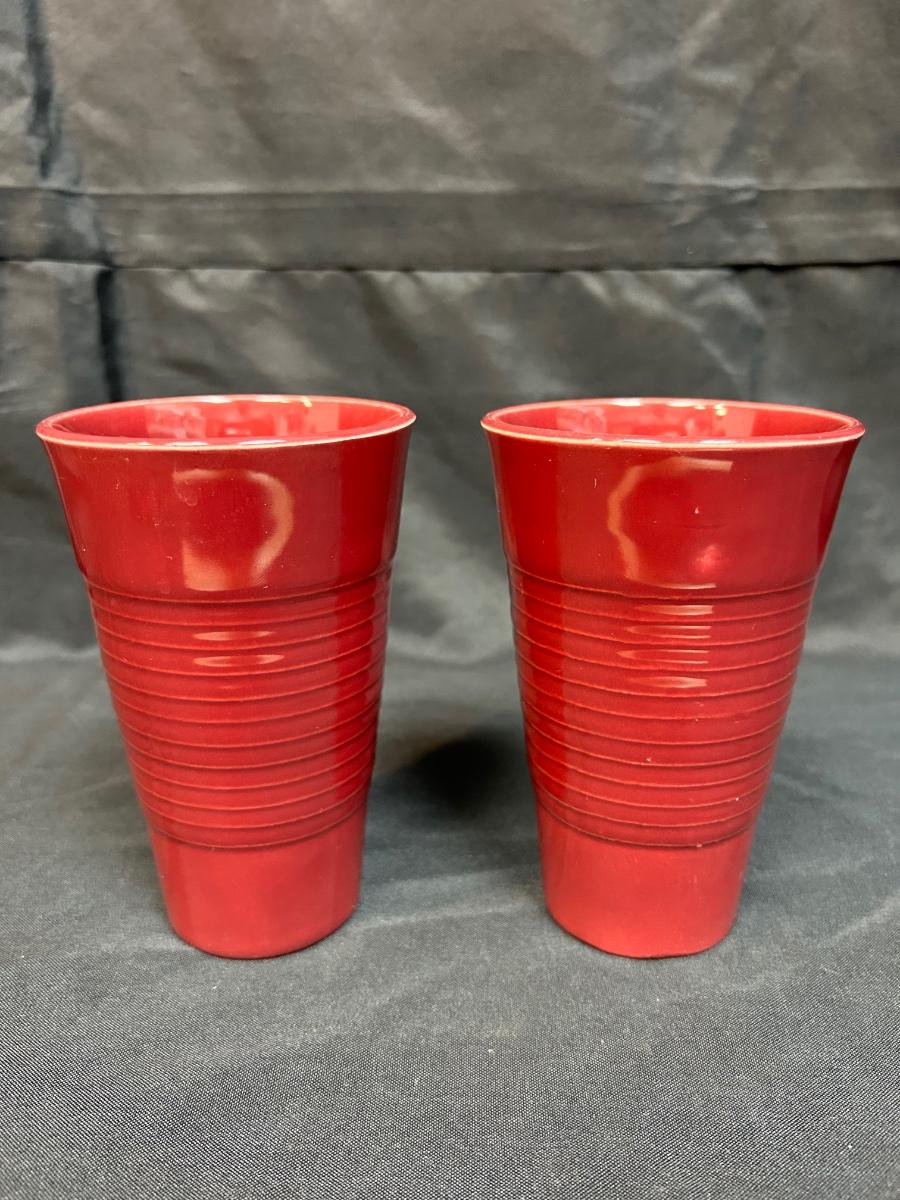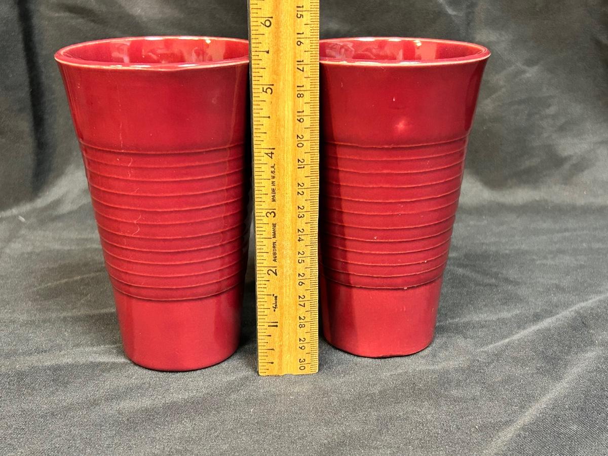 Pair of Vintage Maroon Burgundy Ribbed Franciscan Ware El Patio Pottery Drink Glasses Iced Tea Tumbler. In very good vintage condition. No chips or cracks.