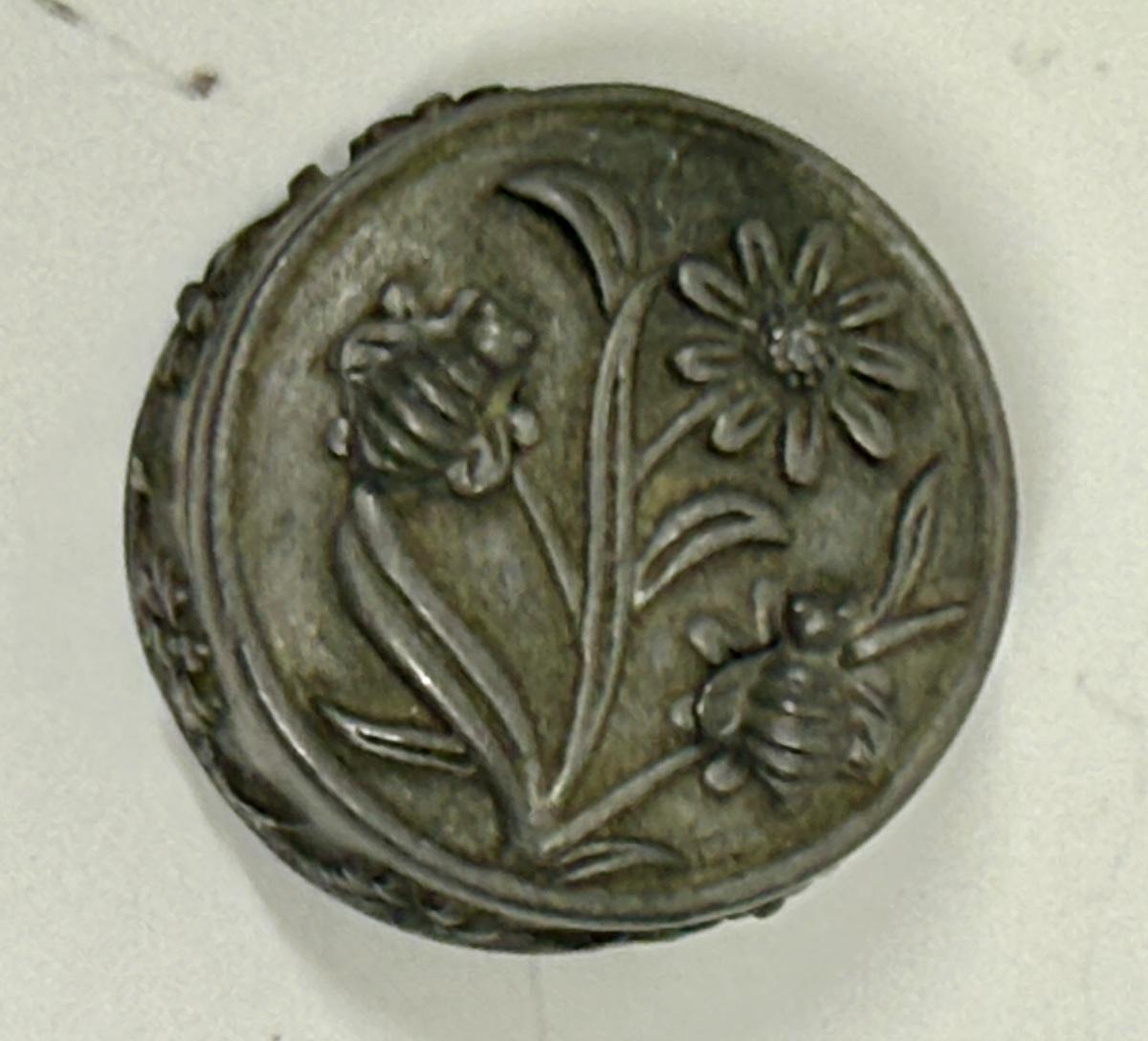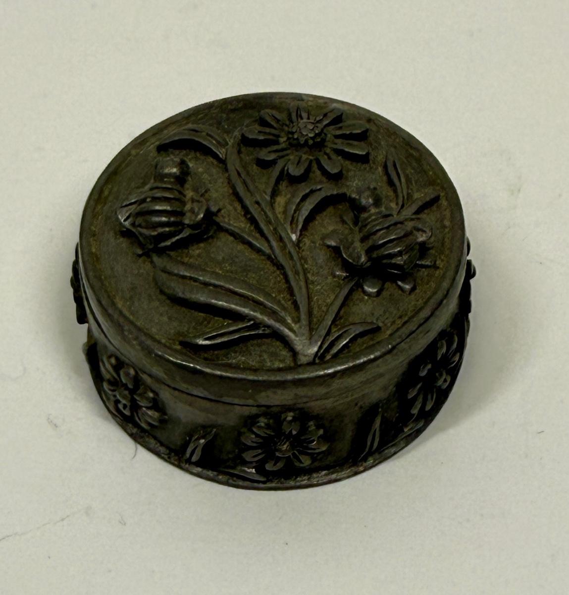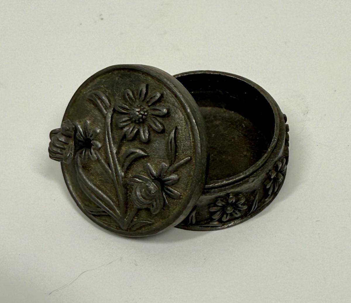 Torino Round Pewter Trinket Box with earrings or brooch from top piece