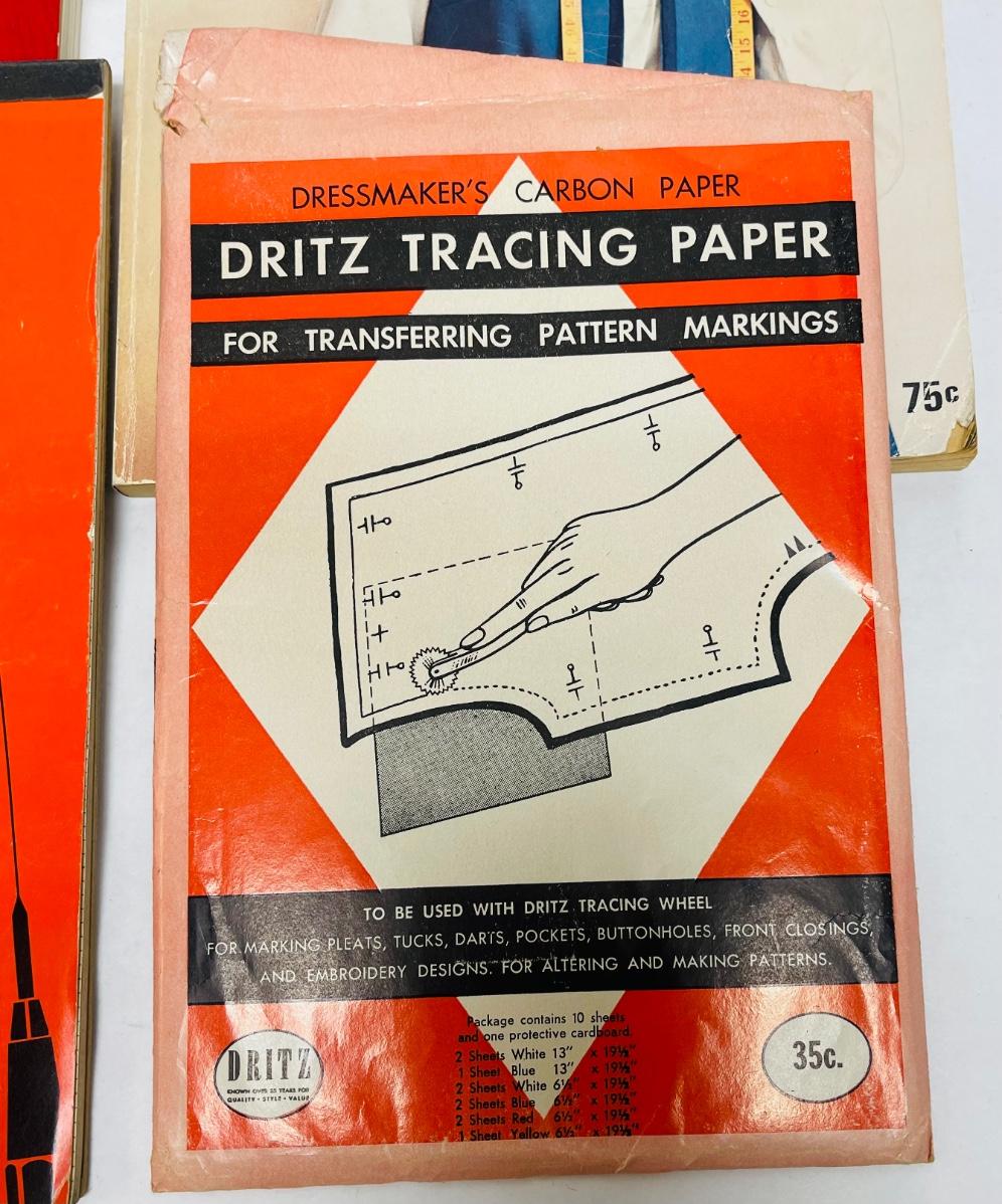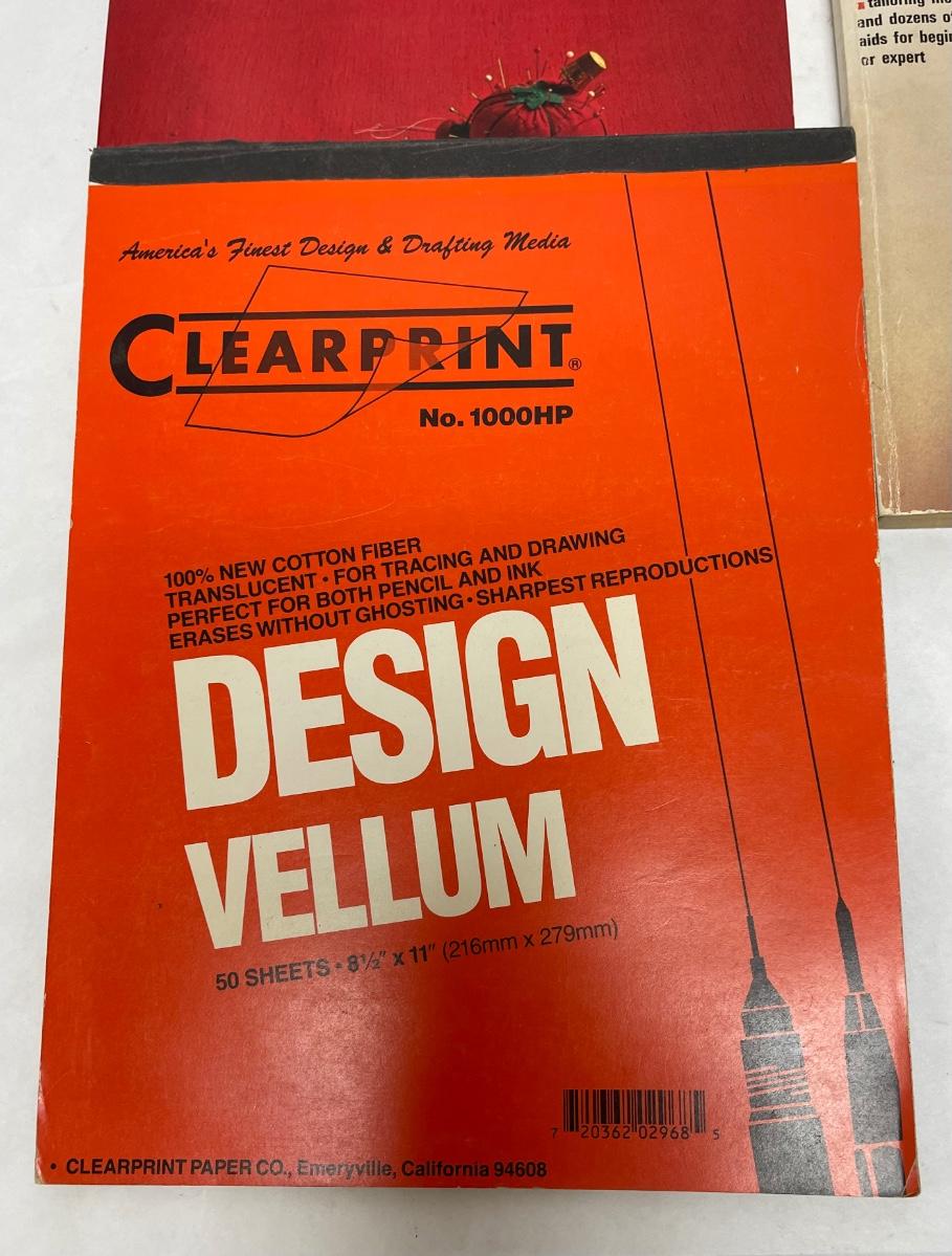 2 books with vellum / tracing paper, 2 books about sewing. Good condition.